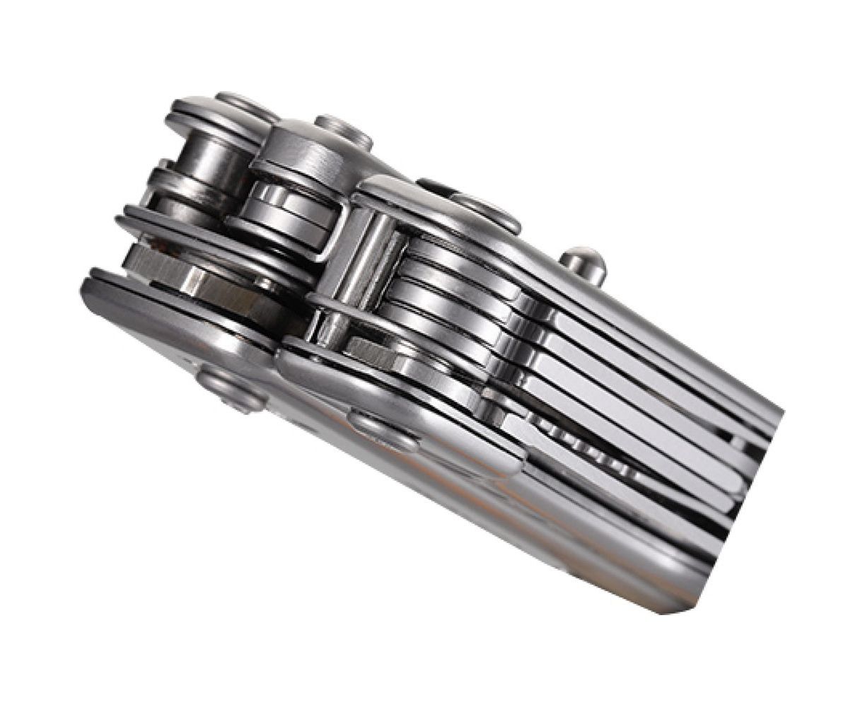 Модель разработана по принципу классического мультиинструмента, основное приспособление – плоскогубцы. Здесь 15 функций для выполнения различных видов работ на практике.