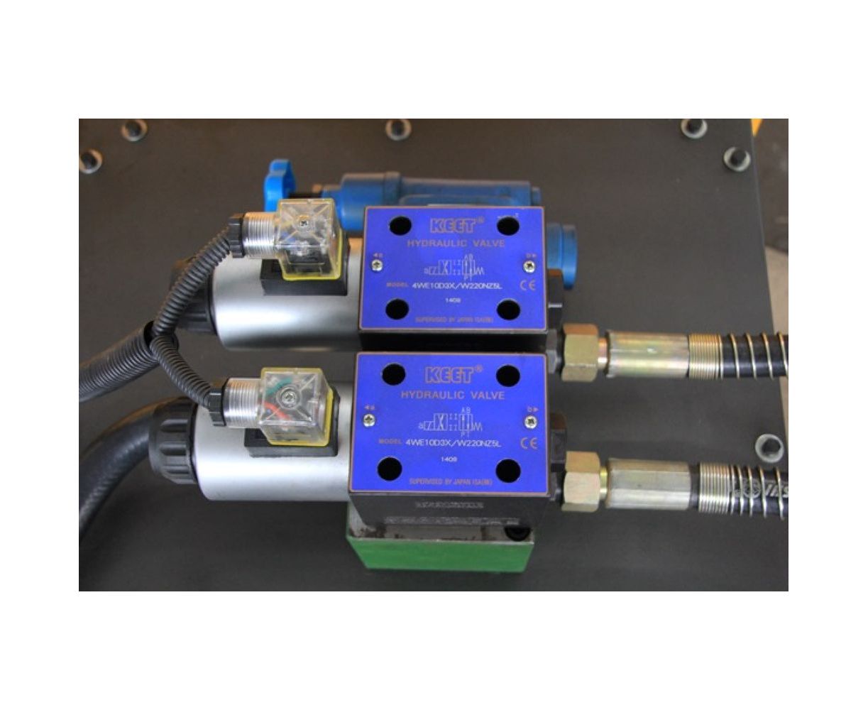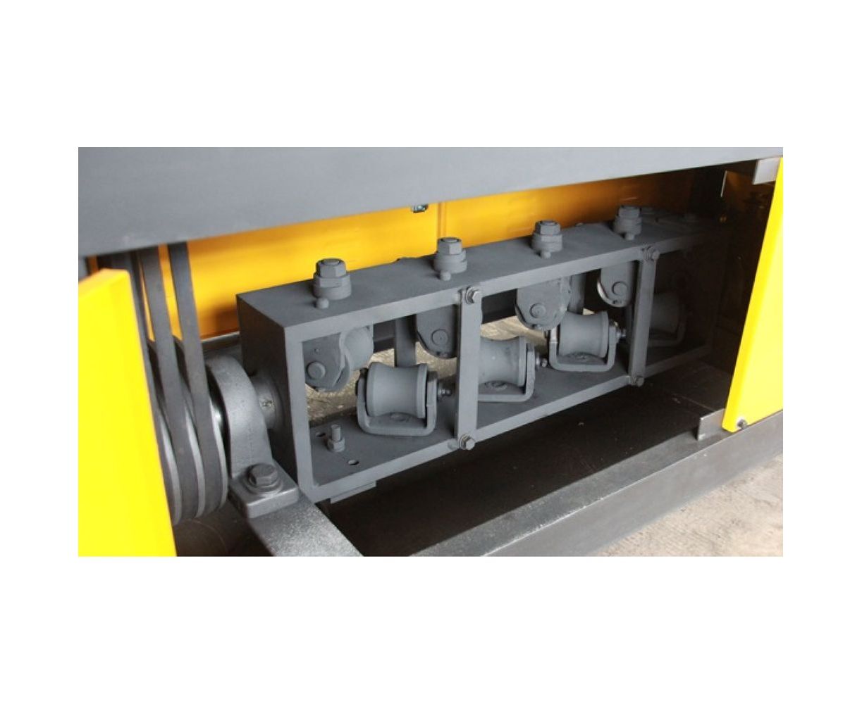 На станке электродвигатель через шкив и ремни передает вращение на выпрямляющую раму. Рама одновременно выполняет функции подачи и выпрямления арматуры. Выпрямление происходит за счет давления обкатных роликов на арматуру. Резку осуществляет нож при помощи гидропривода, давление в гидроприводе создается масляным насосом.