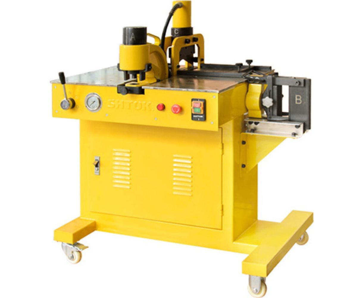 Шинообрабатывающий станок 3в1 SHTOK СРШ-150M 21003 предназначается для гибки, резки, а также перфорации токоведущих шин. Максимальная толщина обрабатываемой шины составляет 12 мм, а максимальная ширина - 150 мм. Устройство быстро и легко перемещается по рабочей площадке благодаря роликовым колесам со стопорным механизмом. Все элементы управления вынесены на боковую панель, что обеспечивает удобство в эксплуатации. Кнопка аварийной остановки позволяет незамедлительно отключить модель в случае возникновения непредвиденной ситуации. На корпусе имеется множество вентиляционных отверстий для эффективного охлаждения внутренних улов. Станок не требует сложного технического обслуживания и прослужит длительное время.