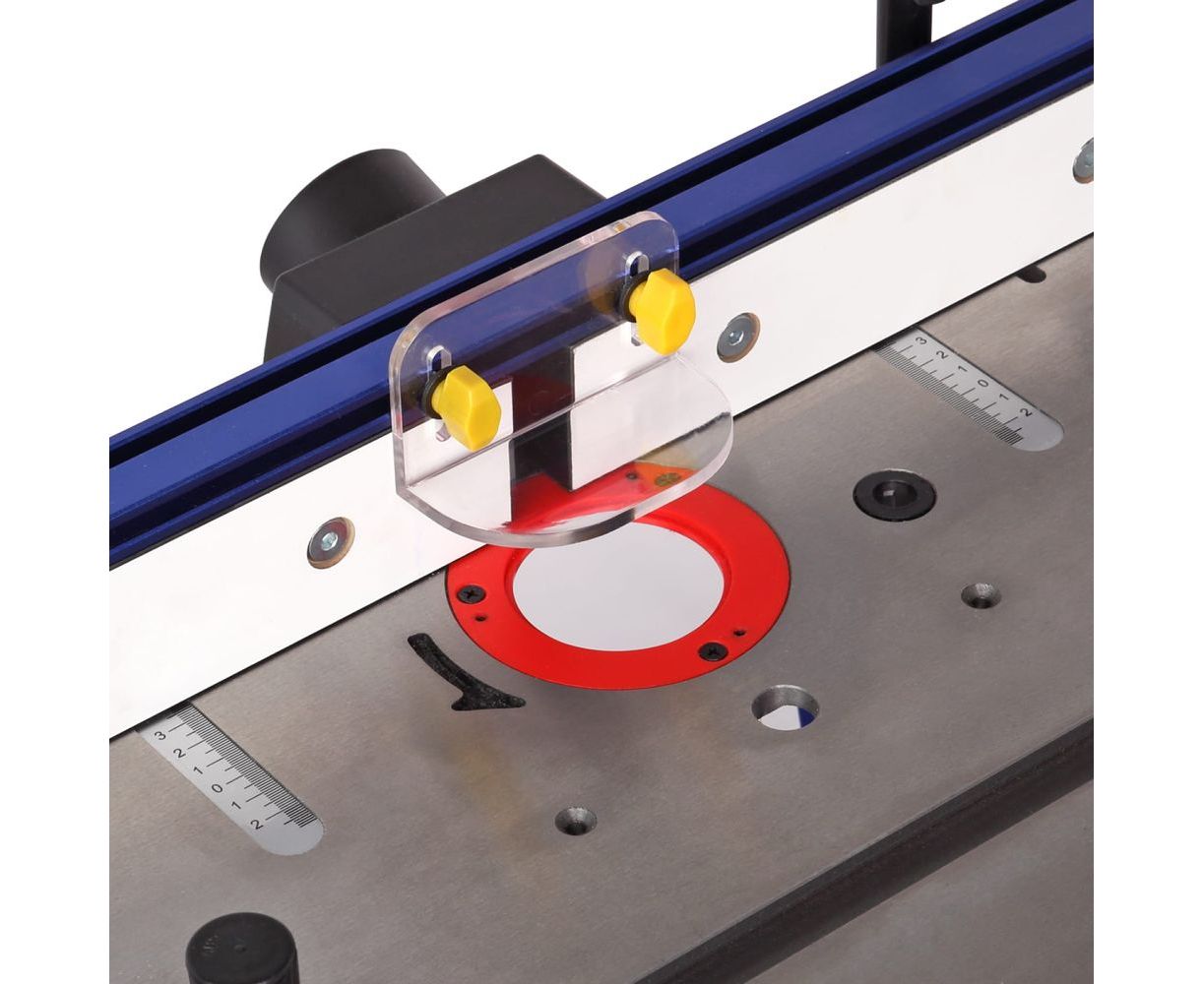 Упор имеет основание, изготовленное из высокоточного алюминиевого профиля. Оснащен двумя раздвижными накладками из МДФ размером 290?63 мм каждая (Д?В), фиксирующиеся гайками-барашками. Ход накладки составляет 52 мм. Общая высота упора - 80 мм. Длина упора с максимально разведенными в обе стороны щечками - 705 мм. На верхней части упора имеется два специальных паза под установку защитного экрана и прижимов (в комплект поставки не входят).