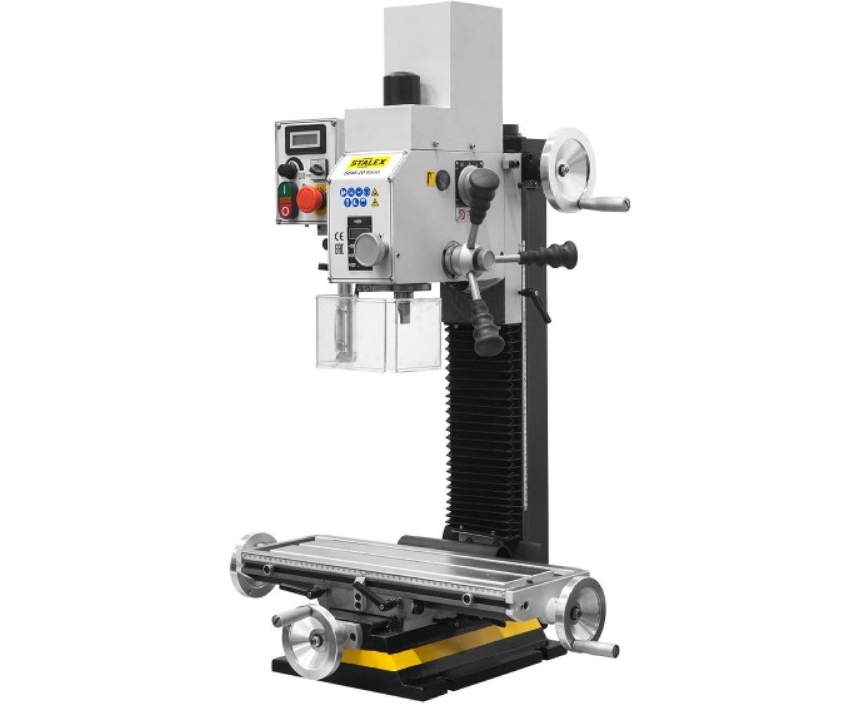 Настольный фрезерно-сверлильный станок Stalex SBM-20 BF20 Vario используется для сверления и фрезерования деталей из металла или пластика.