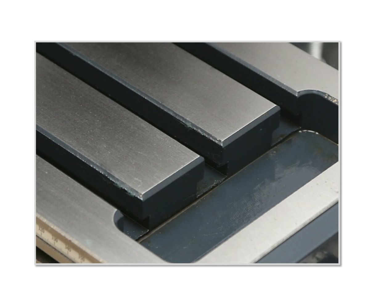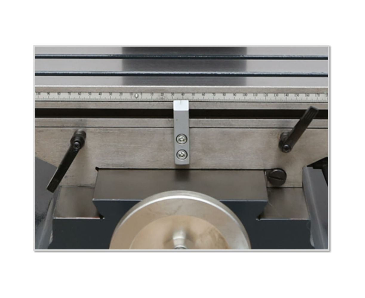 Крестообразный стол перемещается по направляющим типа "ласточкин хвост", регулируемые клиновыми планками. Стол имеет Т-образные пазы для монтажа на нем вспомогательных приспособлений.