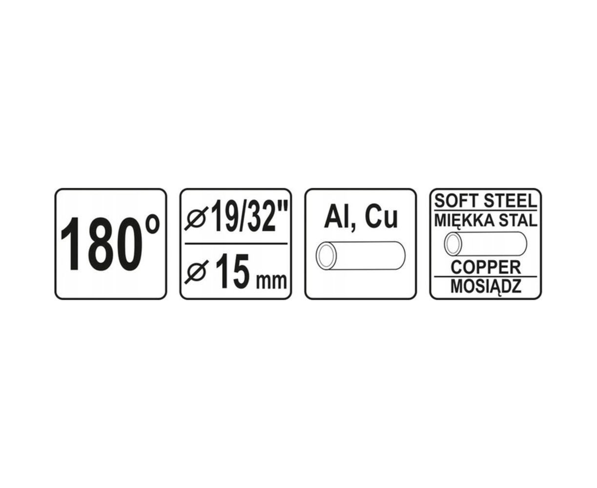 Трубогиб YATO 15мм YT-21844 позволяет сгибать трубы под углом 180°, не сминая их.