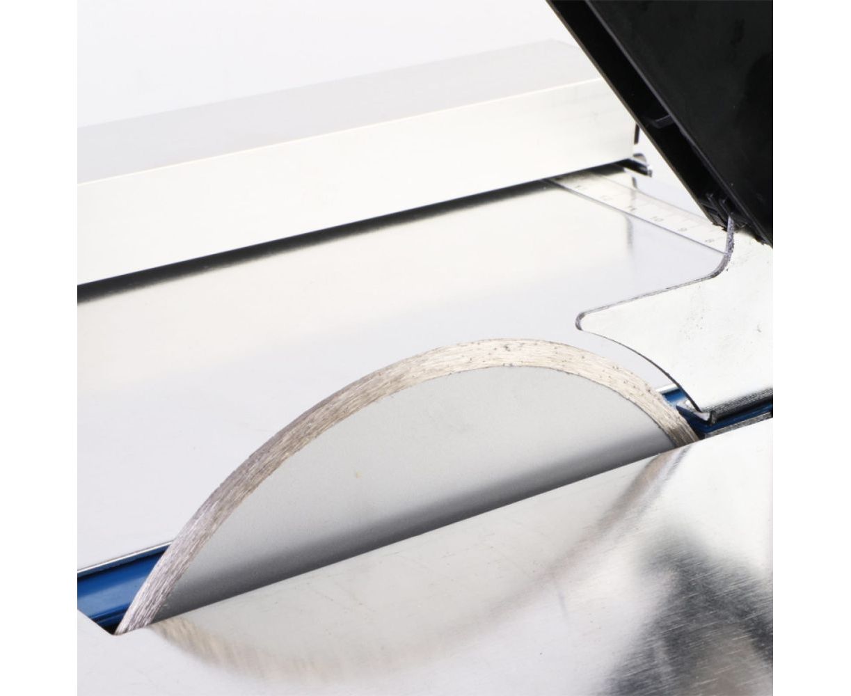 Для обеспечения точности работ стол оснащен линейками с двух сторон. Благодаря высокой скорости вращения диска 2800 об/мин вероятность возникновения сколов на месте распила исключается.