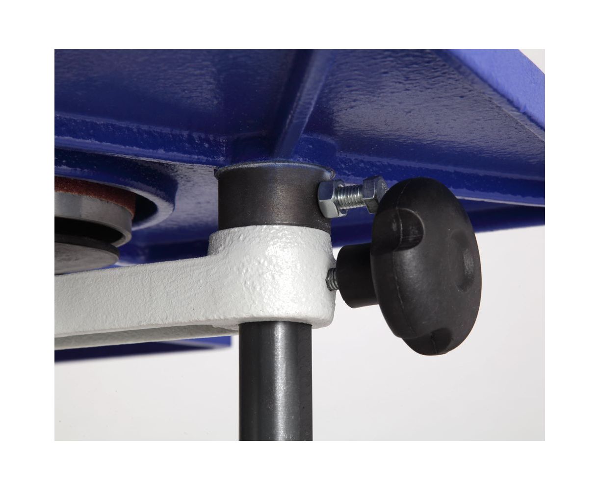 Возможность регулировки столов по высоте обеспечивает удобство работы с заготовками различных параметров. Основной стол оборудован пазом для параллельного или углового упоров. Малый стол предназначен для выполнения шлифовки деталей с внутренним радиусом изгиба до 55 мм.