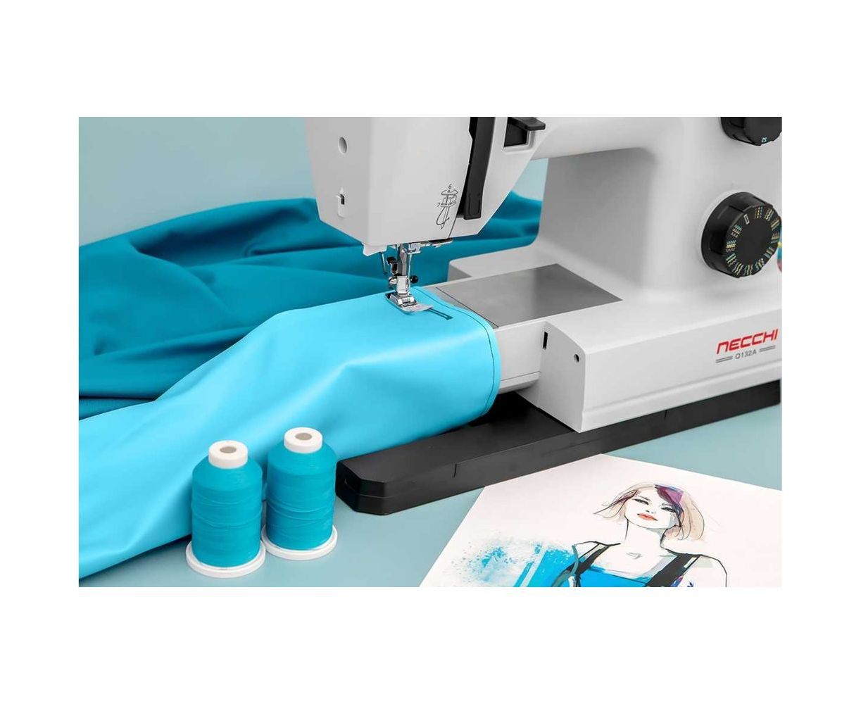 Современная швейная машина с мощным двигателем в 90 Вт и семи полосным транспортером ткани для точного и быстрого шитья! Дополнительный столик образует большую рабочую поверхность для удобной работы с объемными и готовыми изделиями. Ткань ровным полотном попадает под лапку, строчка получается идеальной как на промышленных машинах! Такие параметры позволяют использовать модель NECCHI Q 132 A для работы с любой тканью, из которой изготавливают одежду. От самой тонкой и трикотажной, до самых плотных и толстых материалов.