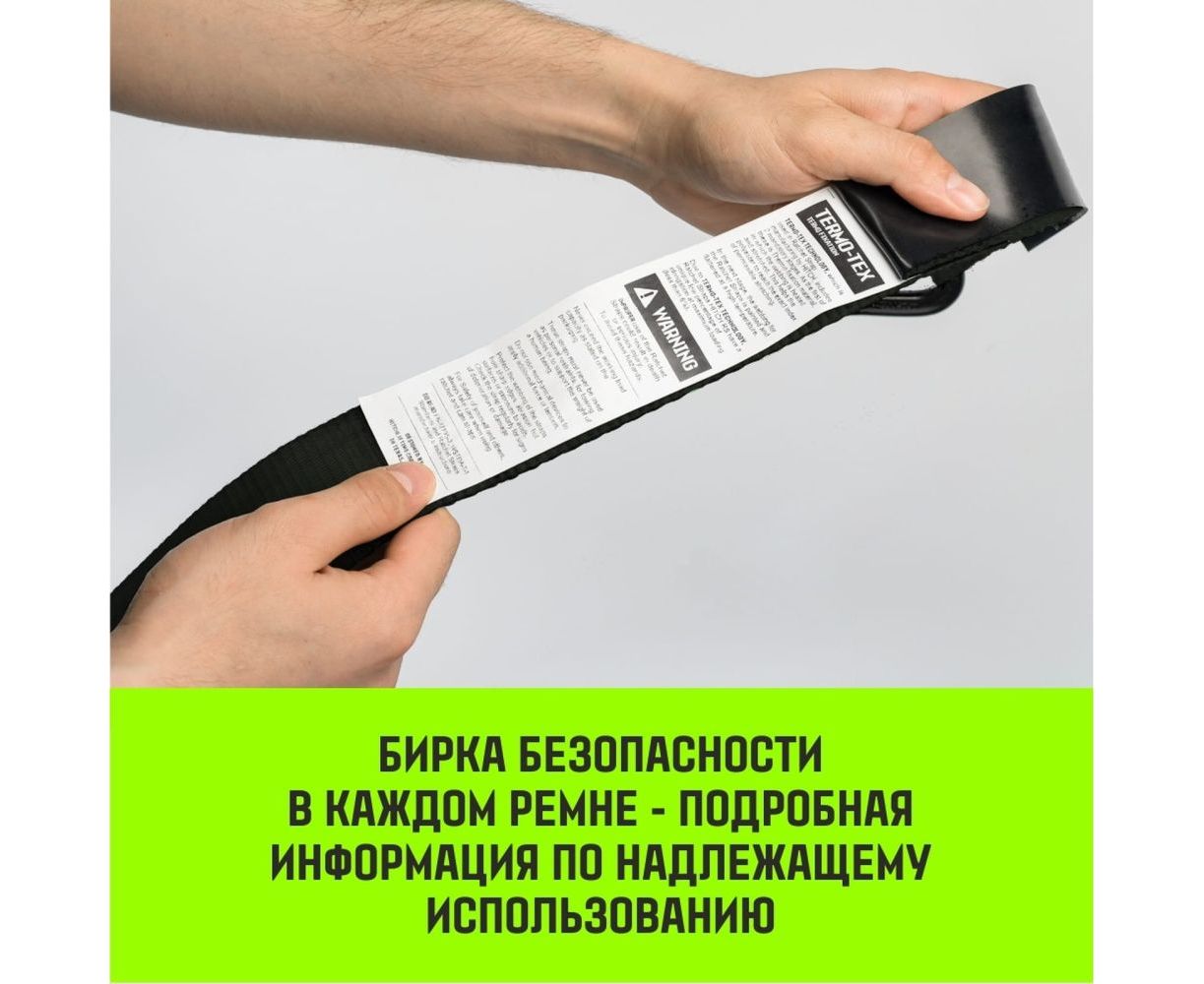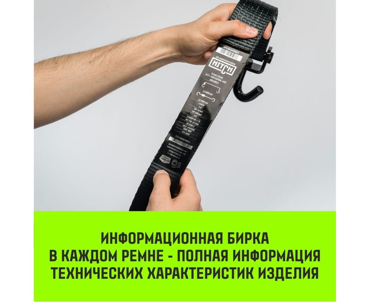 Для безопасной транспортировки груза HITCH разработал технологию TERMO — TEX. Благодаря этому, стяжные ремни HITCH PROFESSIONAL обладают уникально низким процентом удлинения при максимальной нагрузке (менее 6%).
