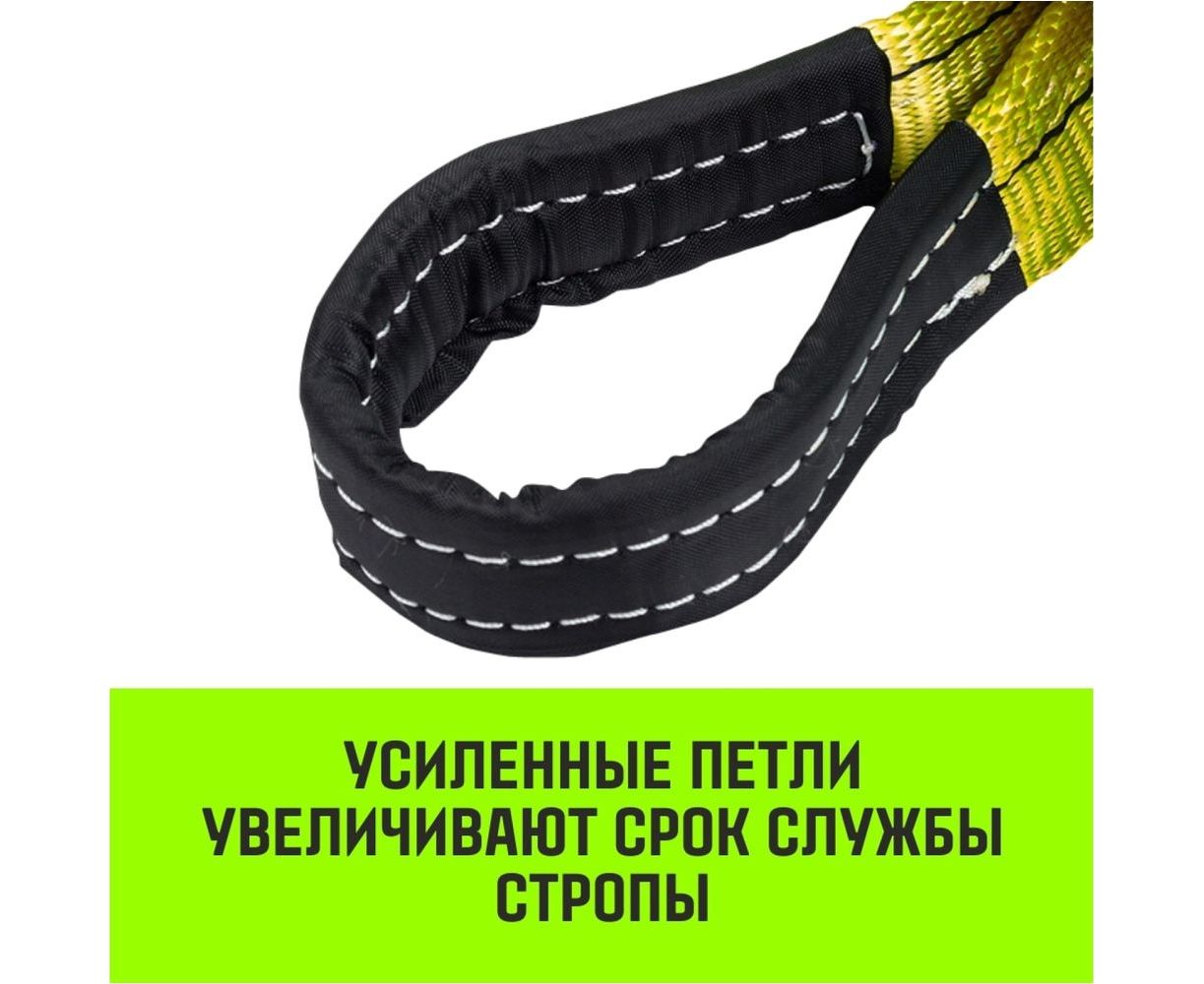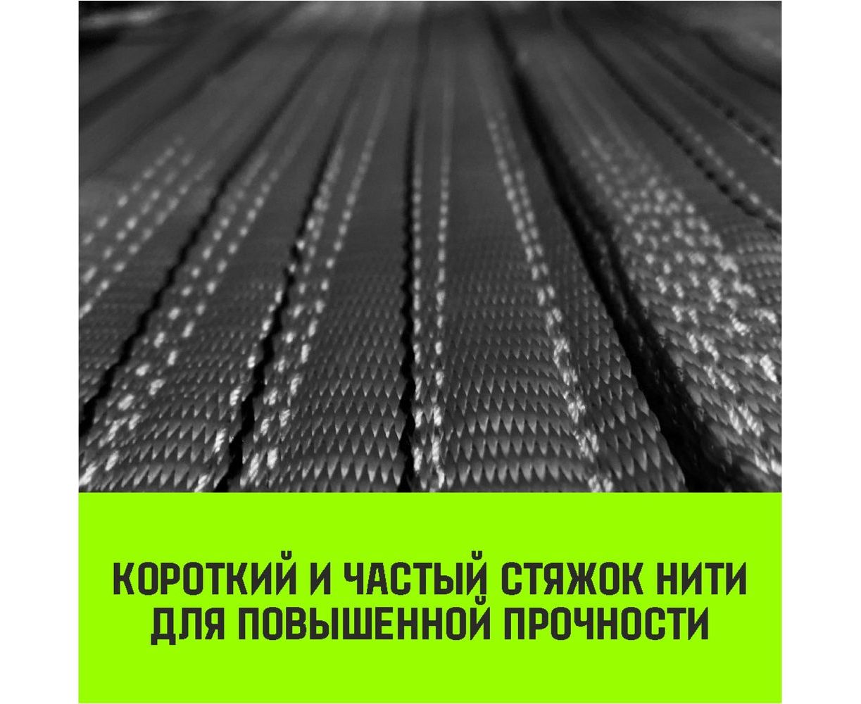 Длина сшивки стропы зависит от заявленной нагрузки и больше, чем у аналогичных продуктов. Это увеличивает надежность в месте сшивки – самом слабом участке в стропах.