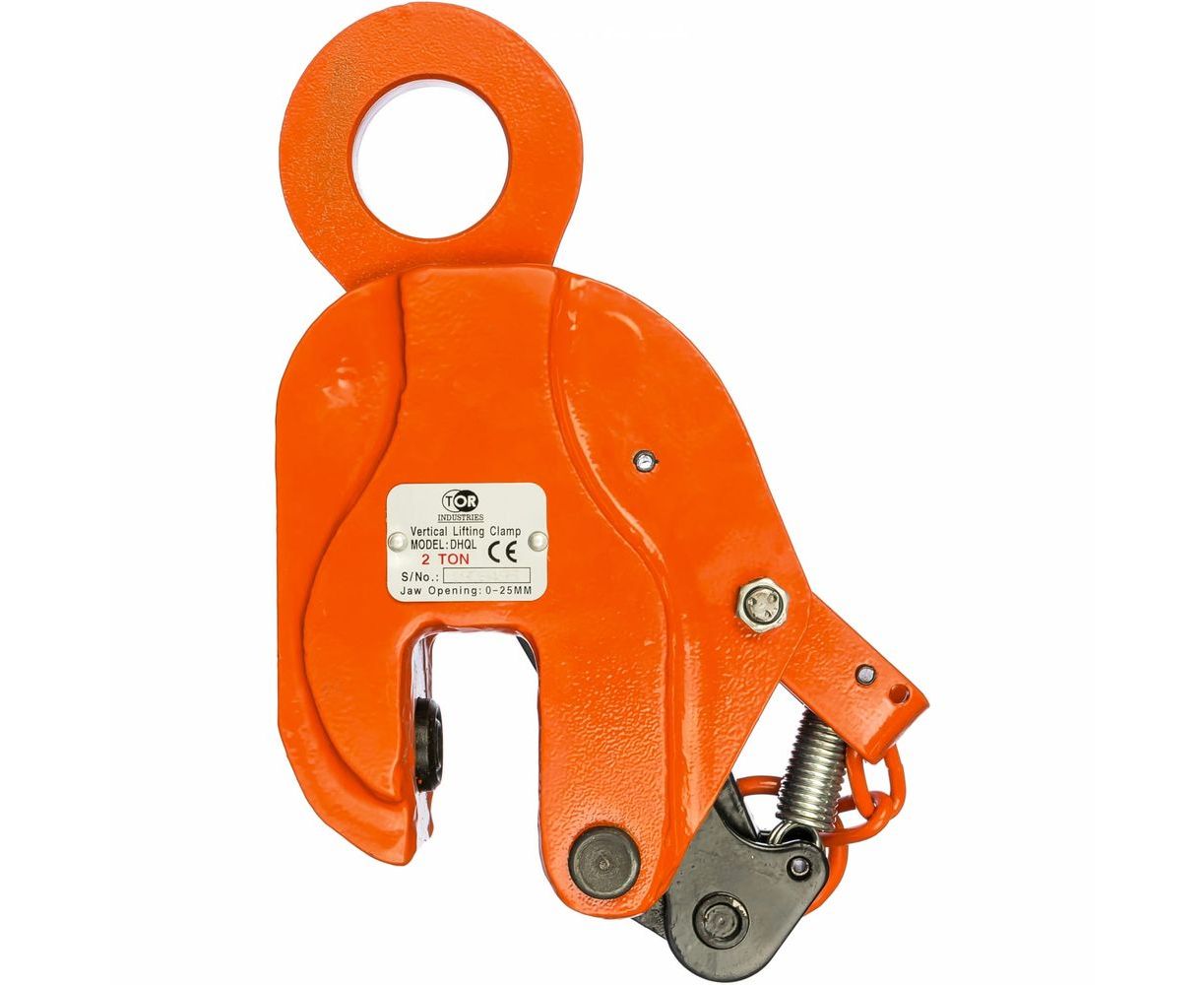 Вертикальный захват TOR DHQL Tor 12224 предназначен для фиксации, подъема и перемещения грузов. Оснастка состоит из корпуса и фиксирующего элемента. Поднятый груз удерживается в вертикальной плоскости при помощи трения нажимного языка о поверхность груза. Вертикальный захват имеет грузовое крепление в виде круглого отверстия.
