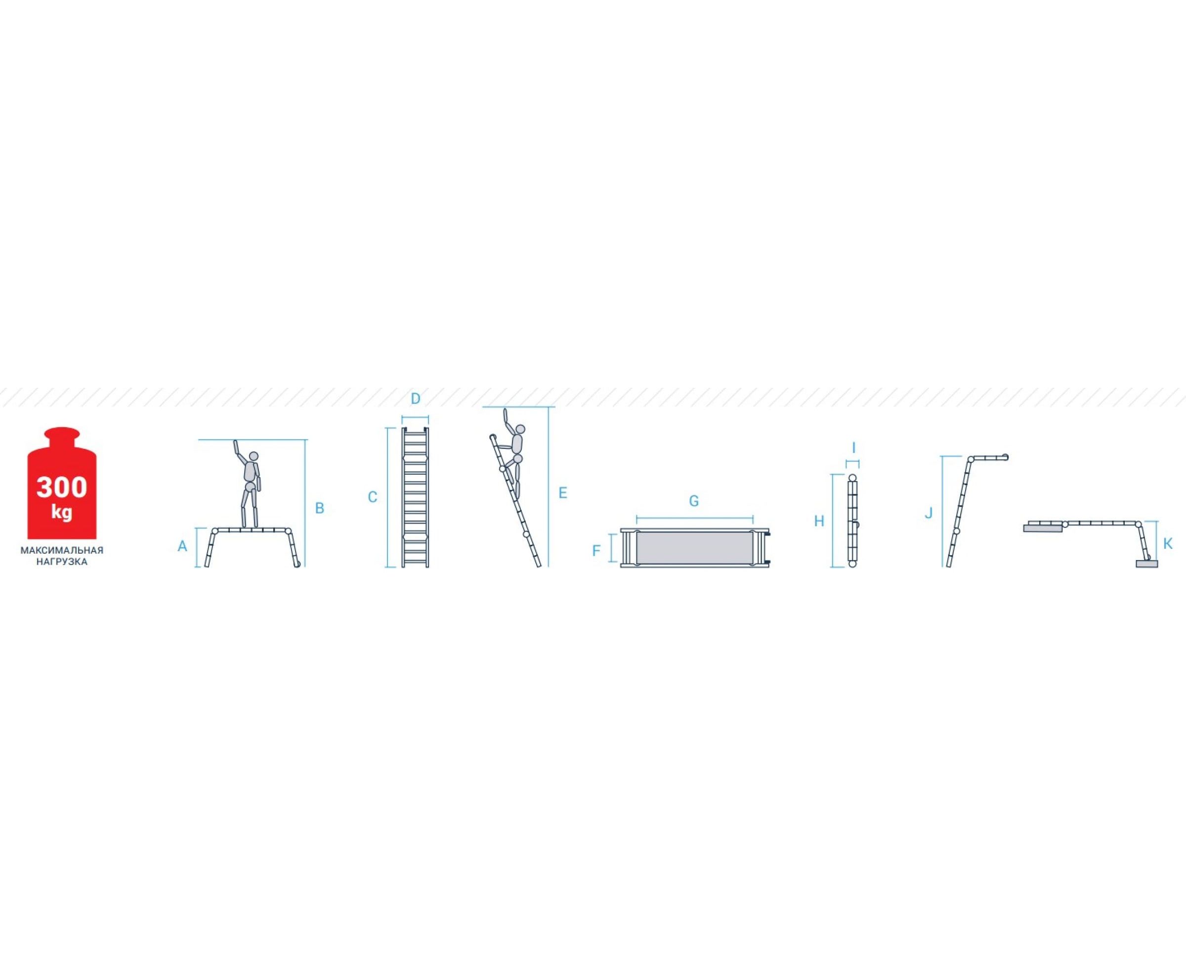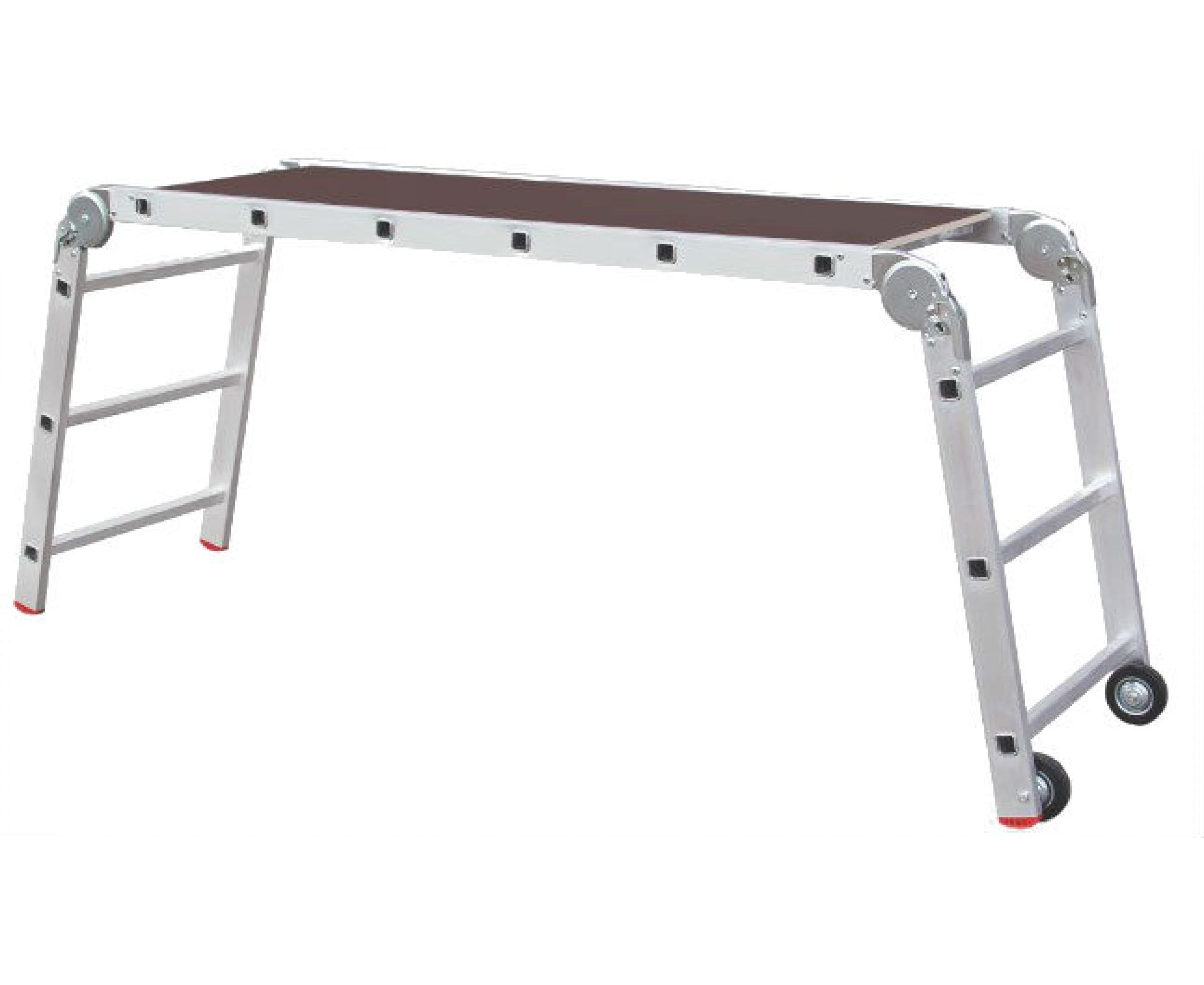 Рабочие подмости со съёмной площадкой и колёсиками Новая Высота NV 334 2+4+2 ПРОФ 3340242 представляет собой функциональную модель, которая успешно используется в качестве обычной приставной лестницы, согнутой приставной лестницы или помоста (для этого предусматривается наличие устойчивого к влаге настила из нескользящей ламинированной фанеры). Пластиковые наконечники позволяют избегать случайного скольжения приспособления по поверхности пола.