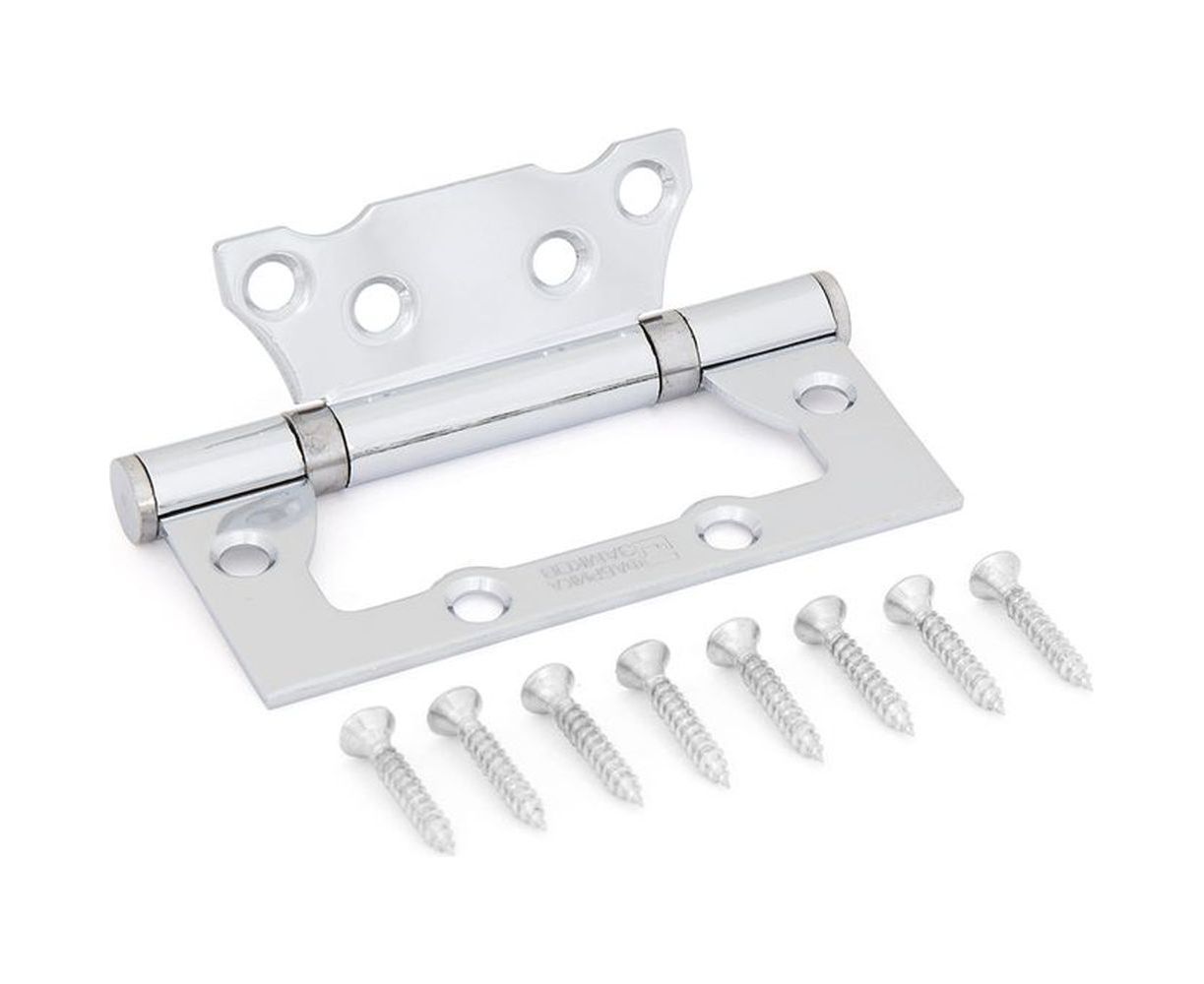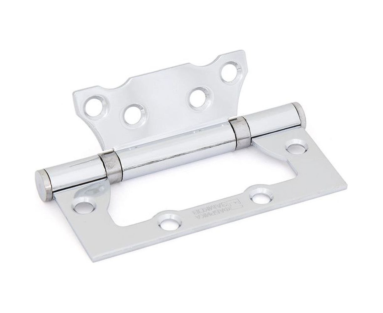 Накладная петля Фабрика замков E-2BB-100 CP УТ-00000612 предназначена для быстрой установки деревянных межкомнатных дверей (до 45 кг) внутри помещений. Изделие выполнено штампом из высокопрочной стали с декоративным гальваническим покрытием.