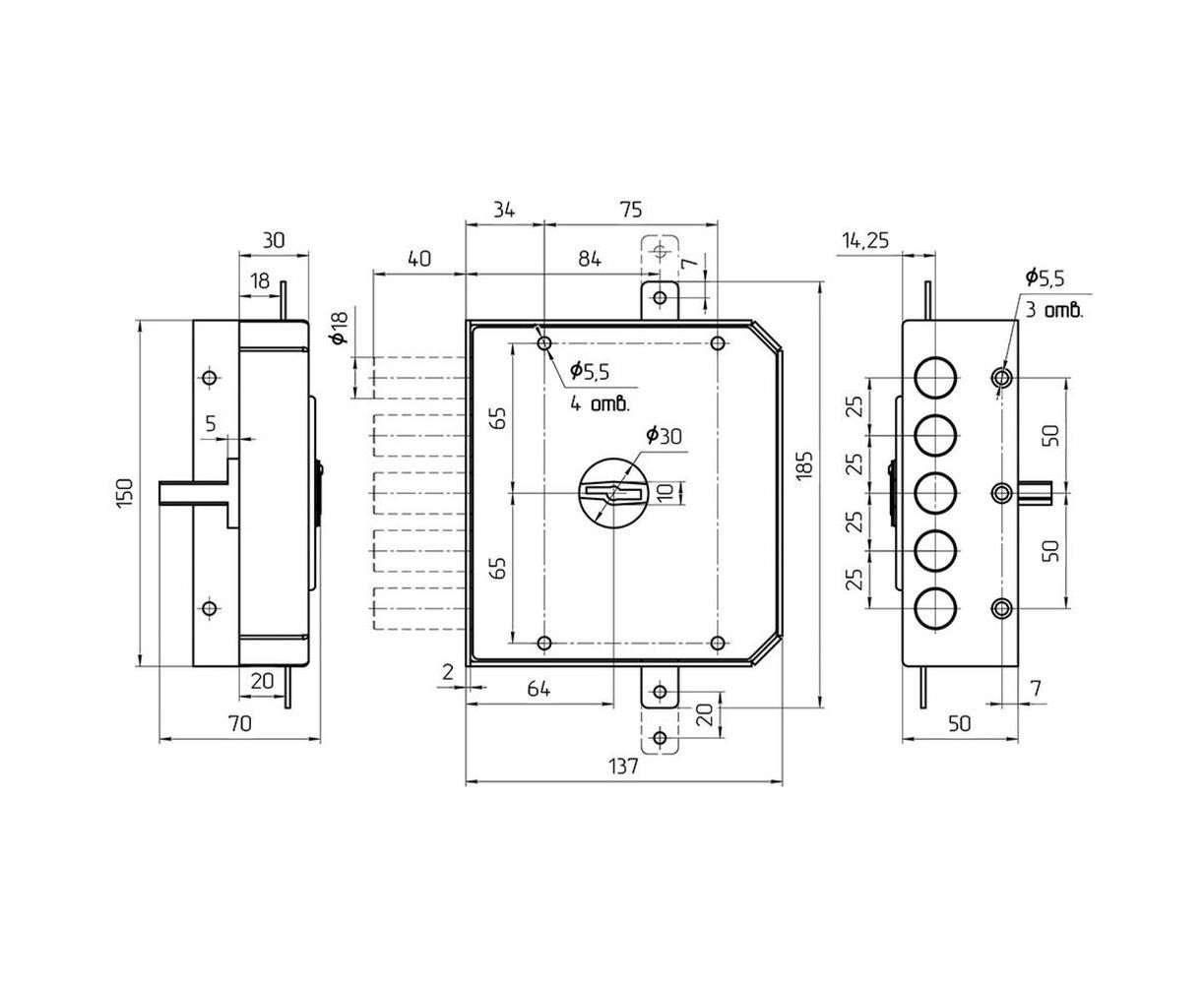 Накладной замок МЕТТЭМ ЗН4 030.1.1 ЗНСП-2Т 19701 - это прочное приспособление для монтажа на дверное полотно с одной стороны. Изделие имеет сувальдный механизм секретности с двойной бородкой. Замок обладает 5 ригелями цилиндрической формы и тремя точками запирания. Комплектуется ключами сувальдного типа, с помощью которых дверь отпирается снаружи.