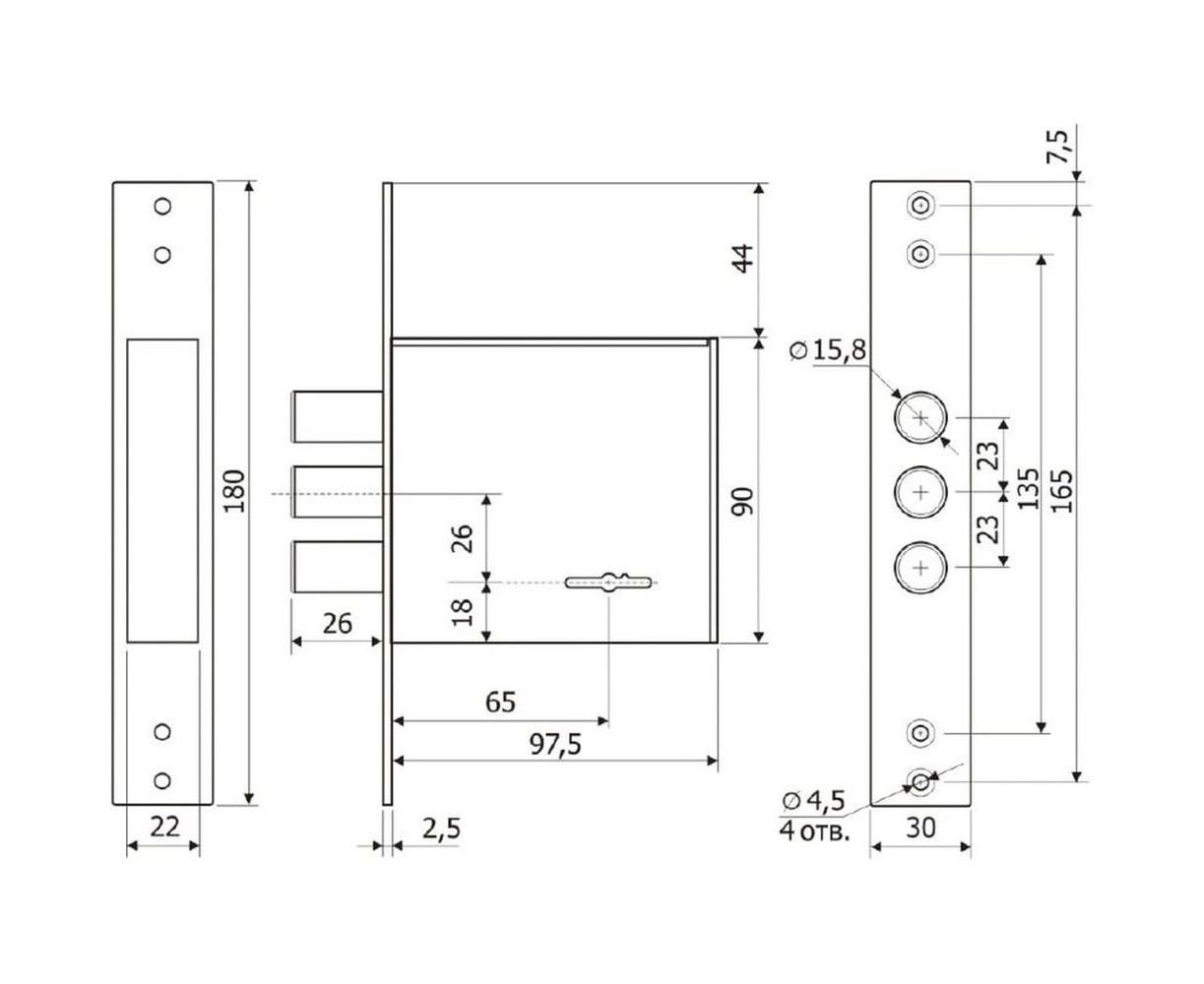 Врезной замок ГАРДИАН 3001-4 кл дл.кл./ЗК303Н-01/ 21262