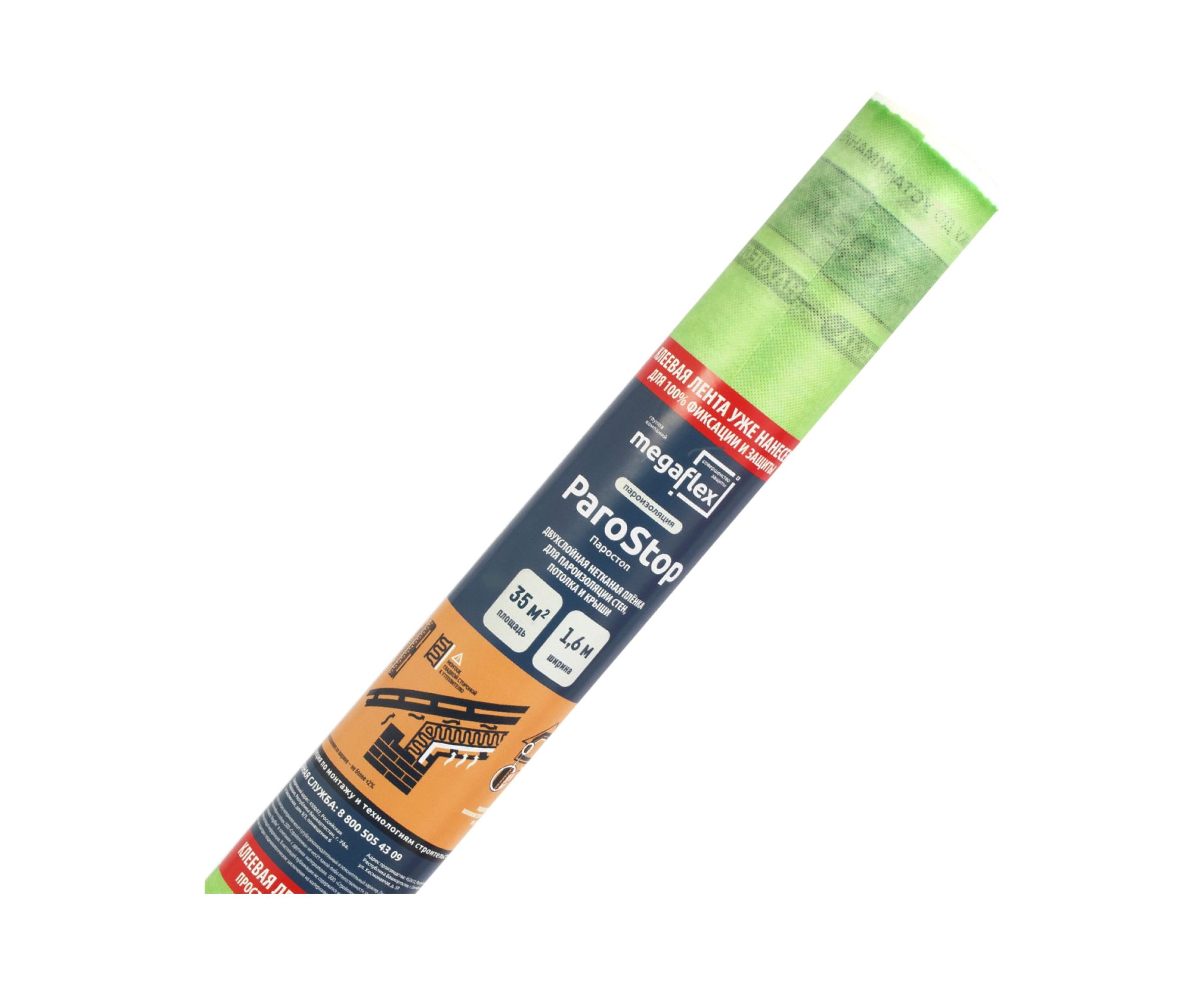 Пароизоляция Megaflex ParoStop В ш 1.6 м, 35 кв.м, двухслойная пленка MFPST.160.35 - классическая двухслойная плёнка для пароизоляции стен, потолков и крыш с клеевой полосой. Выполнена из нетканого полипропилена и подходит для волокнистого утеплителя, XPS и PIR.