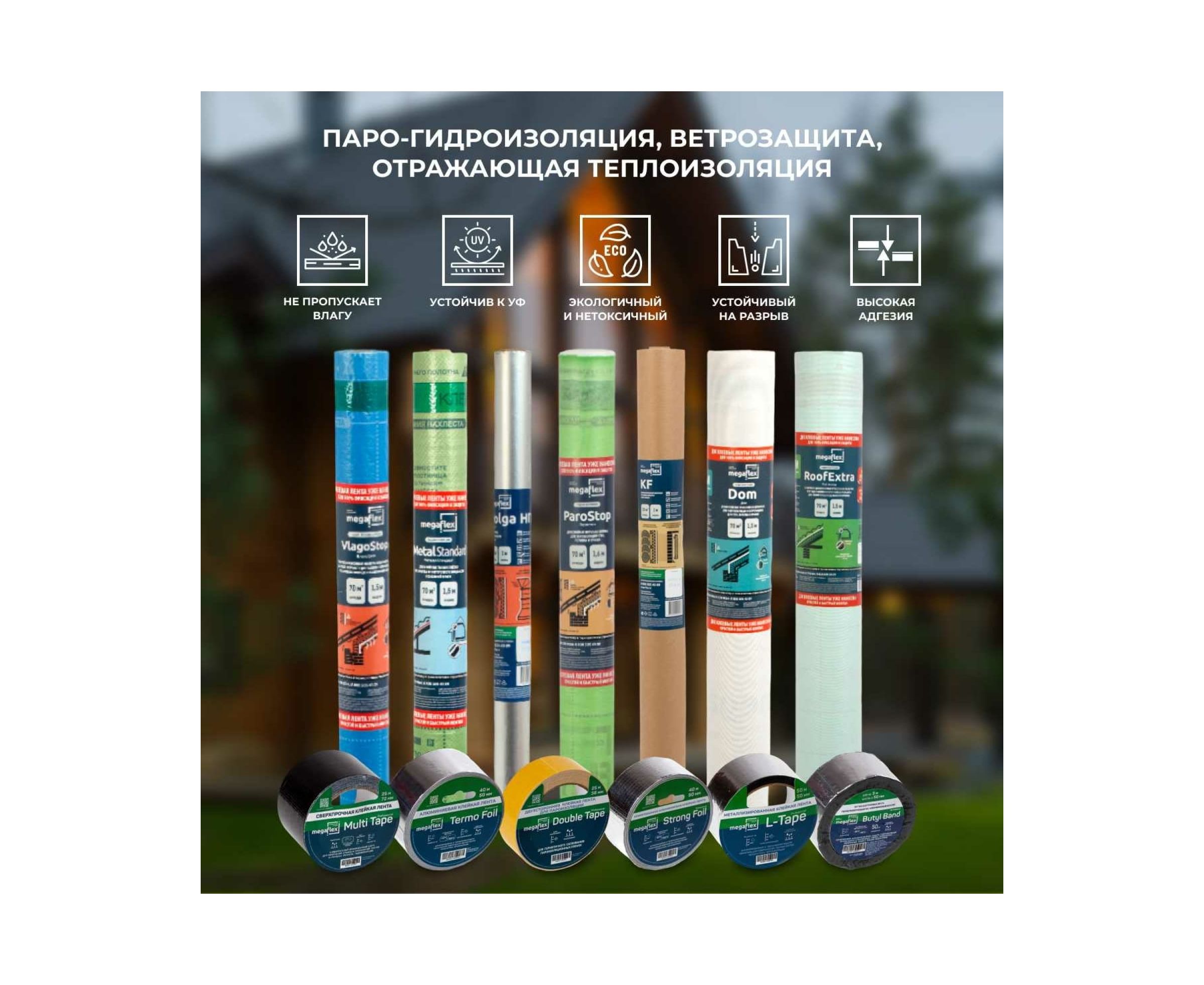 Пароизоляционная двухслойная пленка Megaflex ParoStop В ш 1.6, 35 кв.м с одной клеевой лентой MFPST.160.35