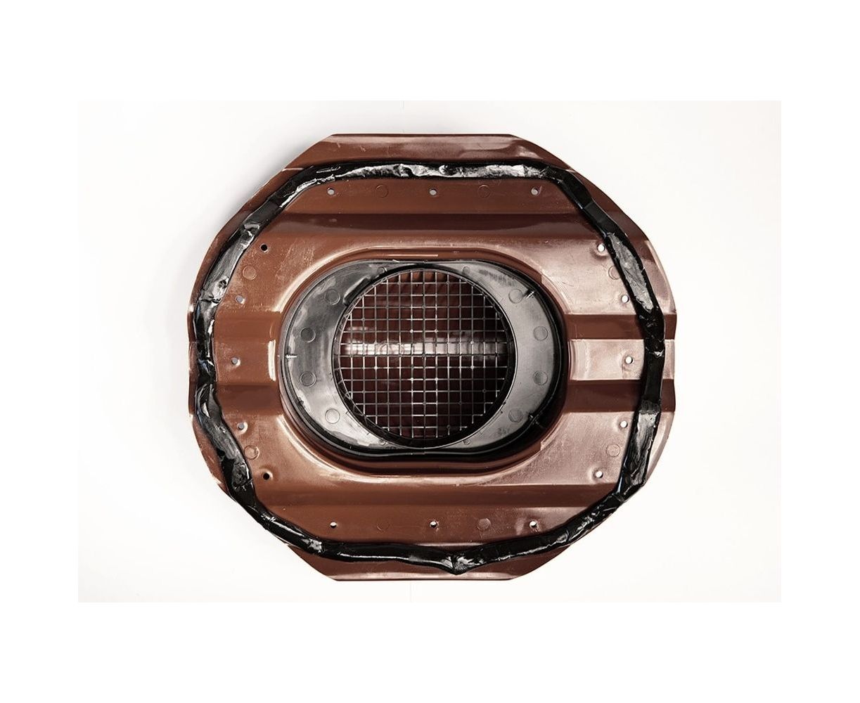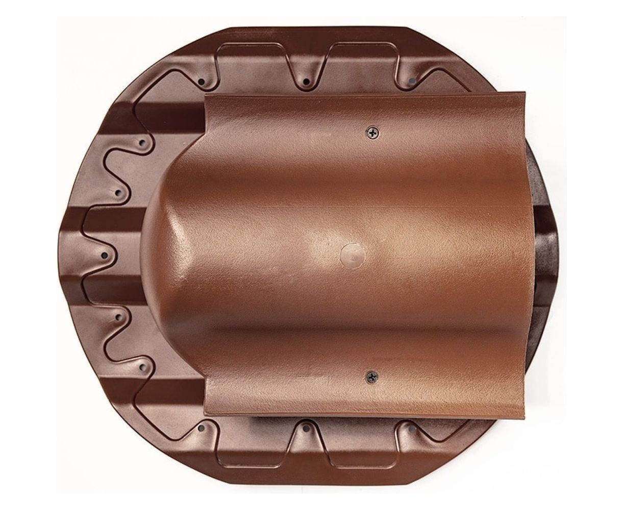 Выход для профнастила или профлиста PROF-20 применяется на кровлях из профильного листа МП 20 и С20 для вентиляции подкровельного пространства и чердачного помещения. Возможно присоединение гофротрубы 110-130 мм диаметром (приобретается отдельно).