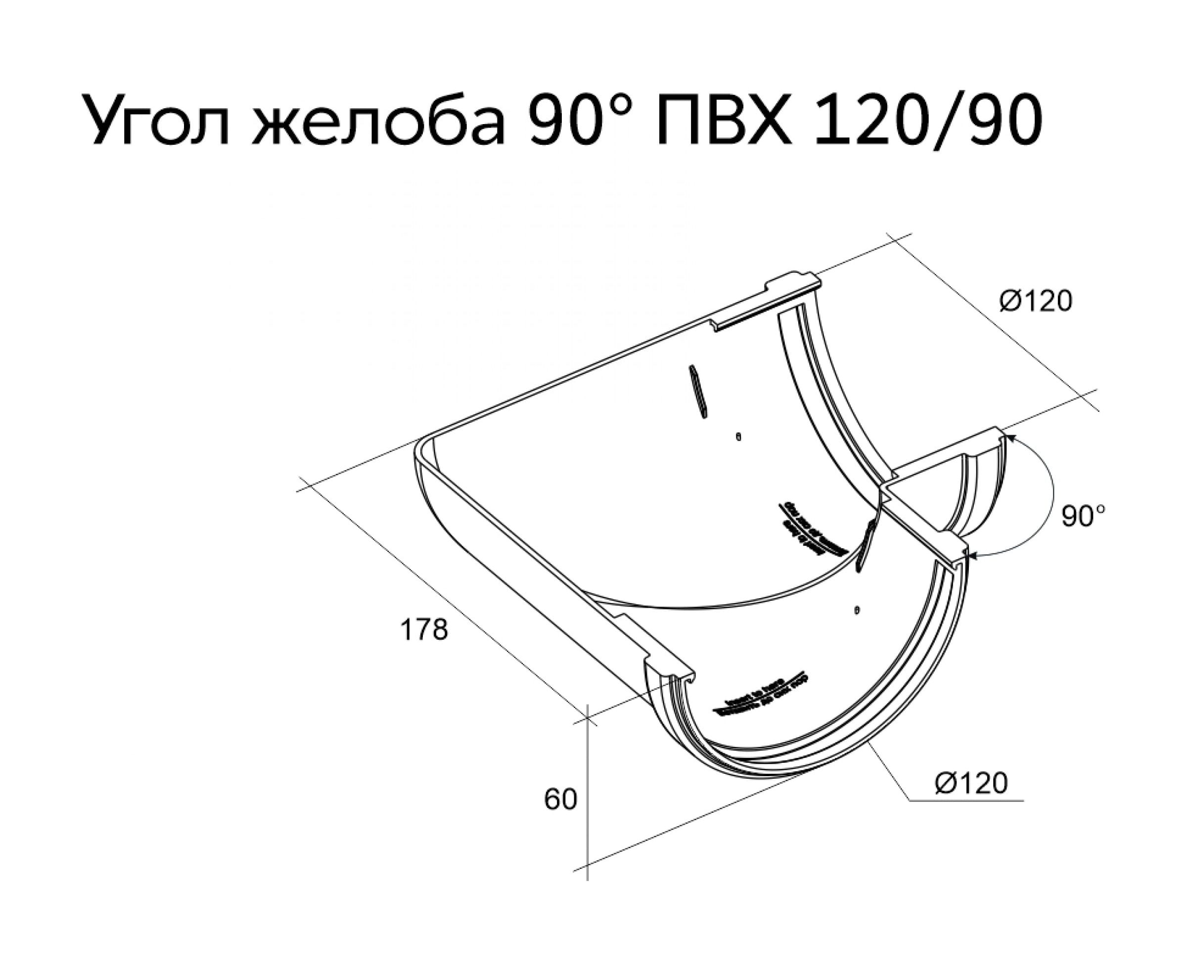 Угол желоба Grand Line 90 градусов, универсальный, ПВХ GL, бордо RAL 3005 269489