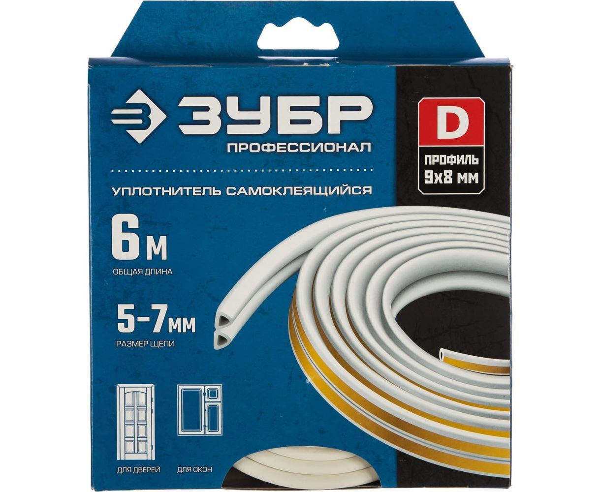 Самоклеящийся уплотнитель Зубр резиновый профиль D белый 6 м 40920-006
