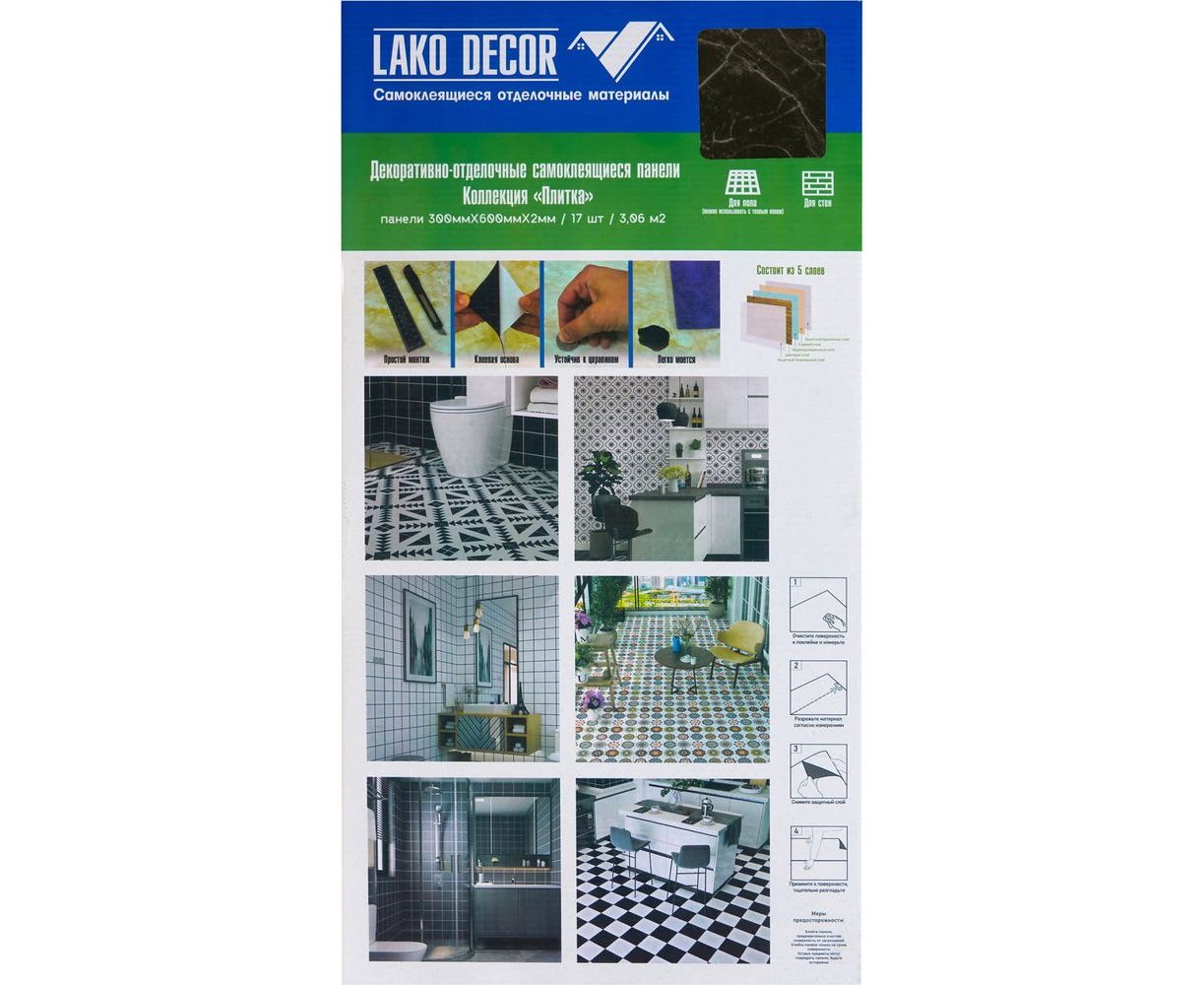 Самоклеящаяся ПВХ плитка LAKO (глянец; черный мрамор; толщина 2 мм; 3,06 м²) LKD-PH81036-1