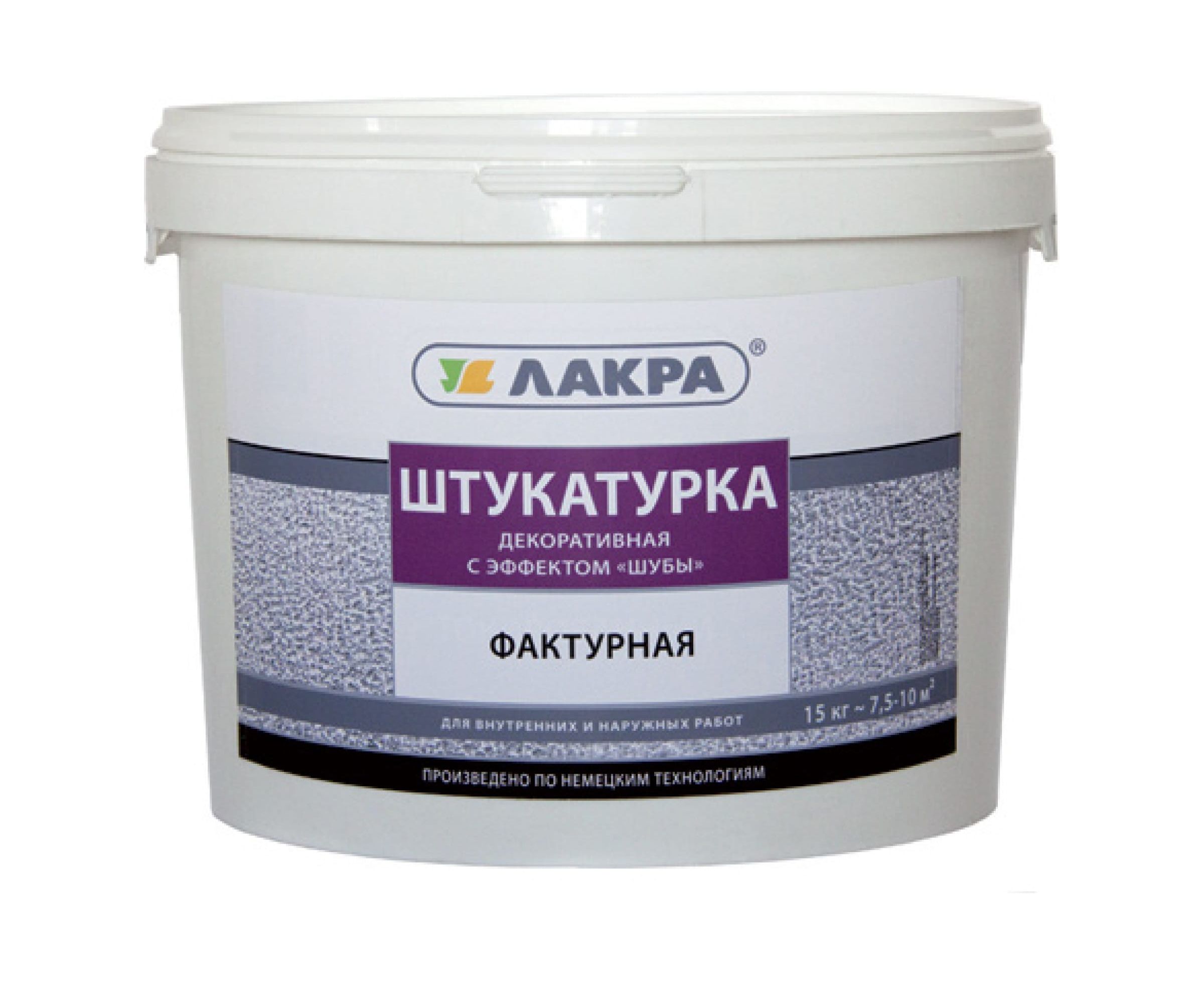 Декоративная фактурная штукатурка с эффектом шубы Лакра белая, 15 кг 90003023046 позволяет скрыть мелкие неровности, образуя рельеф на поверхности. Применяется при проведении внутренних и наружных отделочных работ. Для нанесения используется валик.