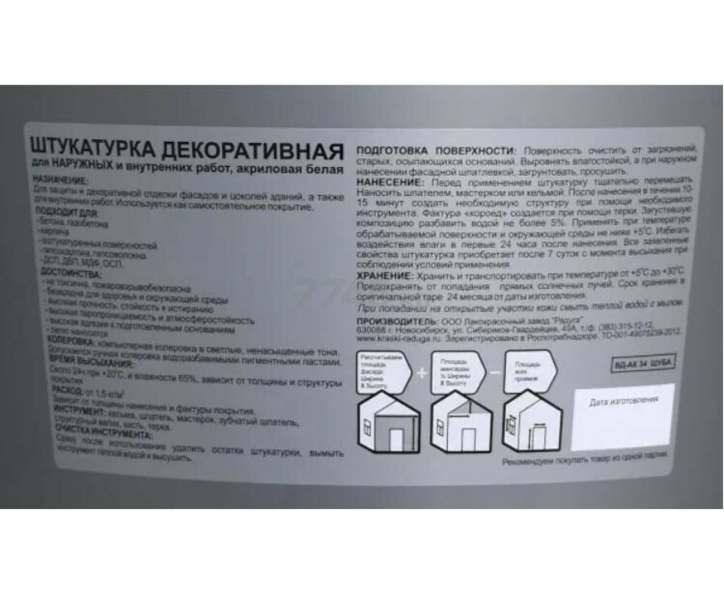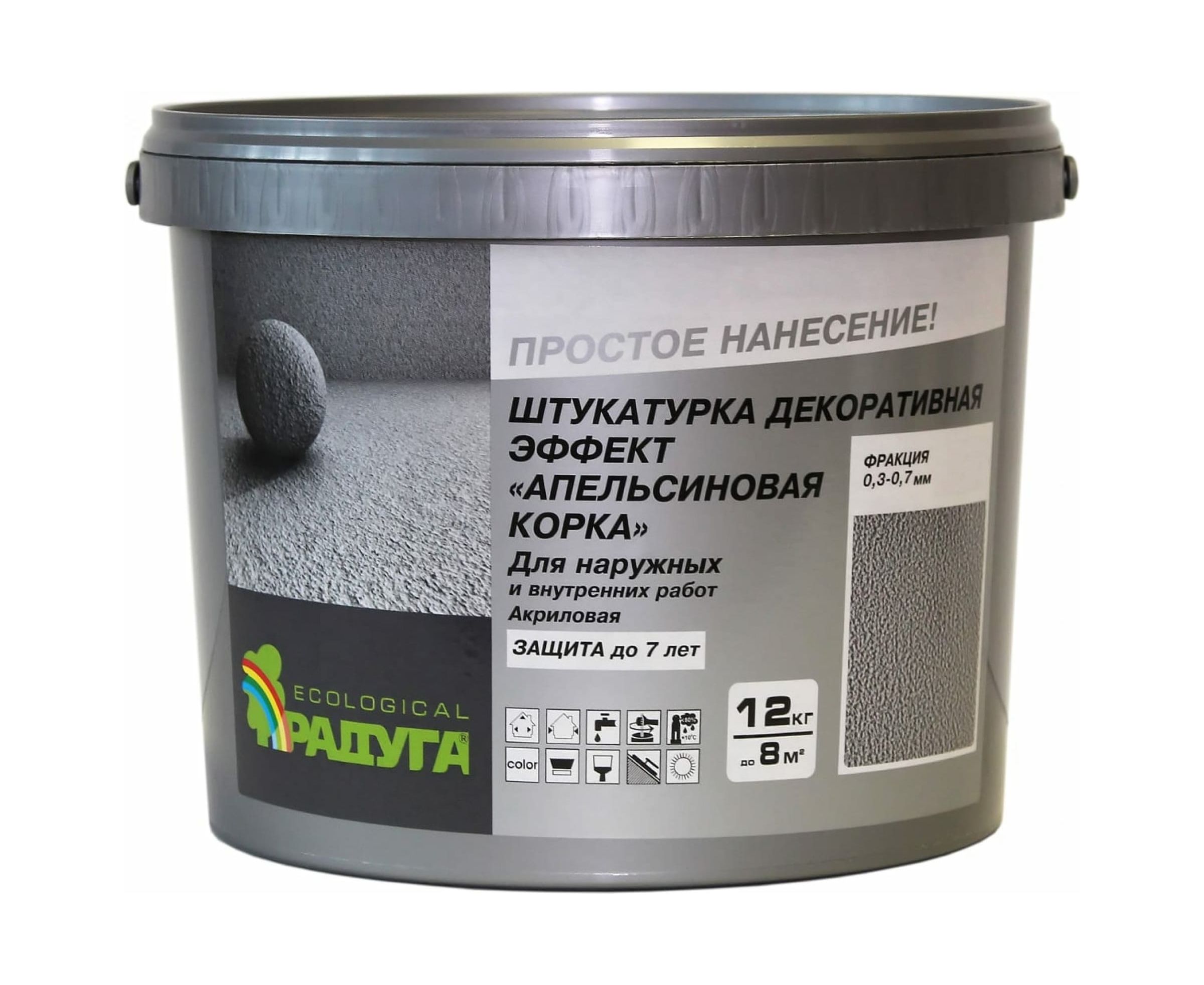 Декоративная штукатурка ""Апельсиновая корка"" 0,3-0,7 мм, 12 кг Радуга 141693