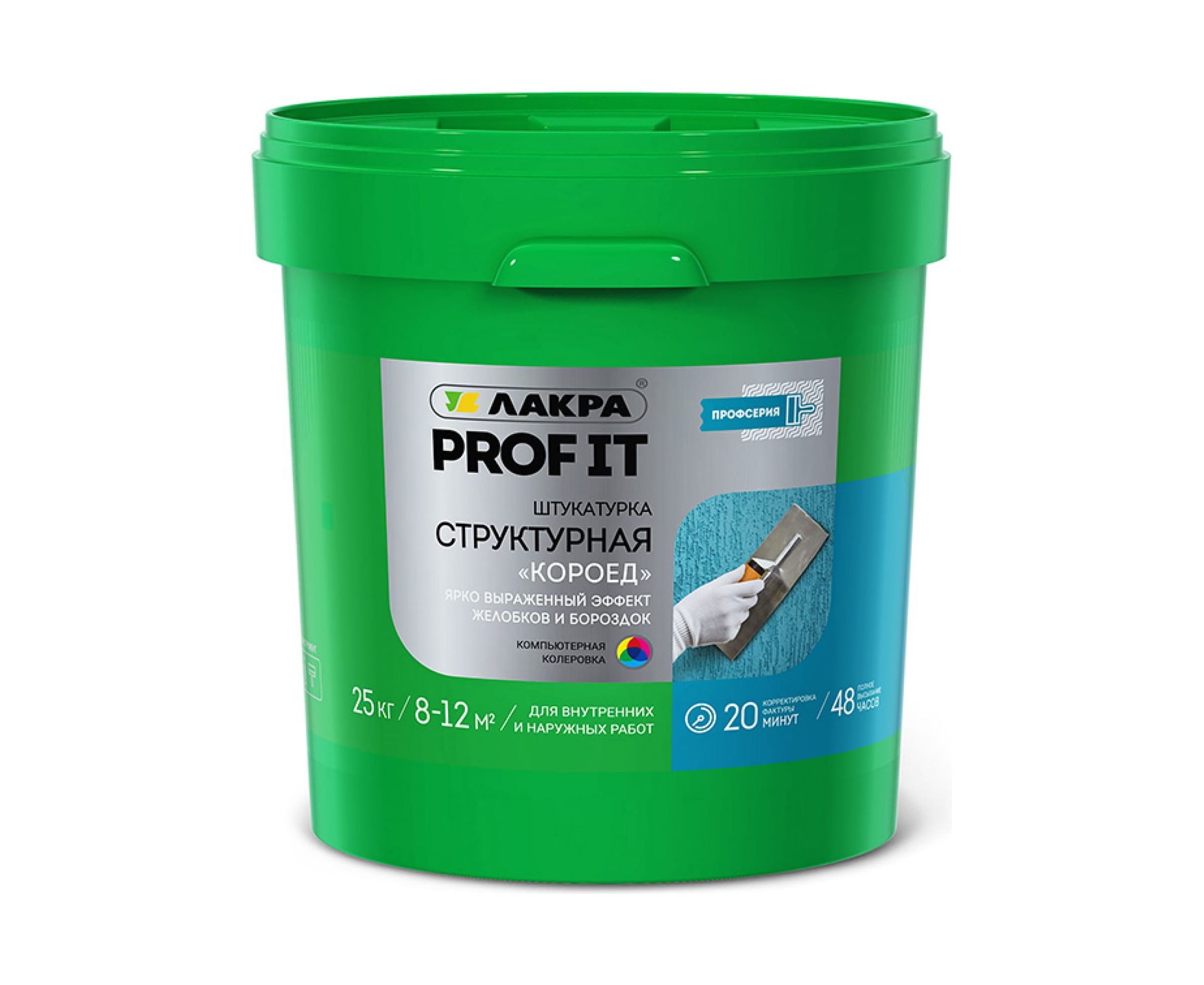 Структурная штукатурка Лакра PROF IT короед, 2 мм, 25 кг Лк-00008193 подойдет для отделочных работ внутри и вне помещений.
