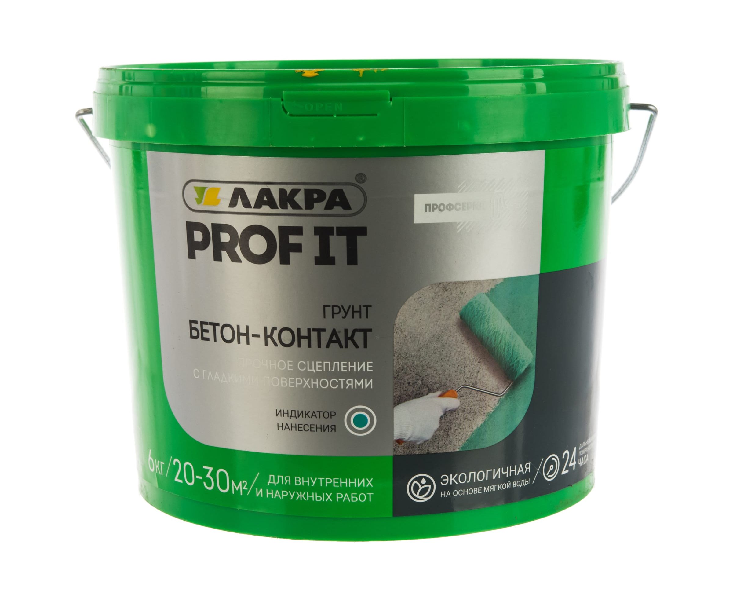 Грунт бетон-контакт Лакра PROF IT 6 кг Лк-00008169 предназначен для предварительной пропитки плотных и слабо впитывающих поверхностей перед нанесением гипсовых, известковых и цементных штукатурок.