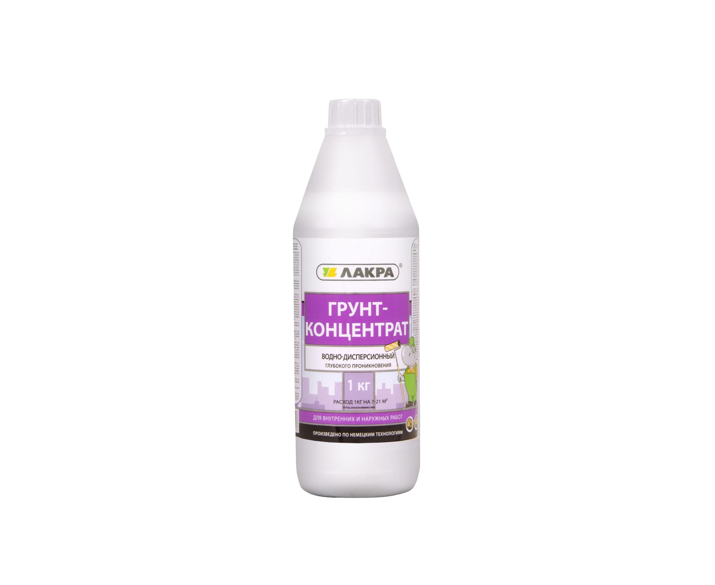 Грунт-концентрат Лакра 1 кг 90001750593 предназначен для пропитки различных конструкций из бетона, кирпича и штукатурки внутри и снаружи помещения. Концентрат необходимо разбавить водой в соотношении 1:2 или 1:6 в зависимости от структуры основания.