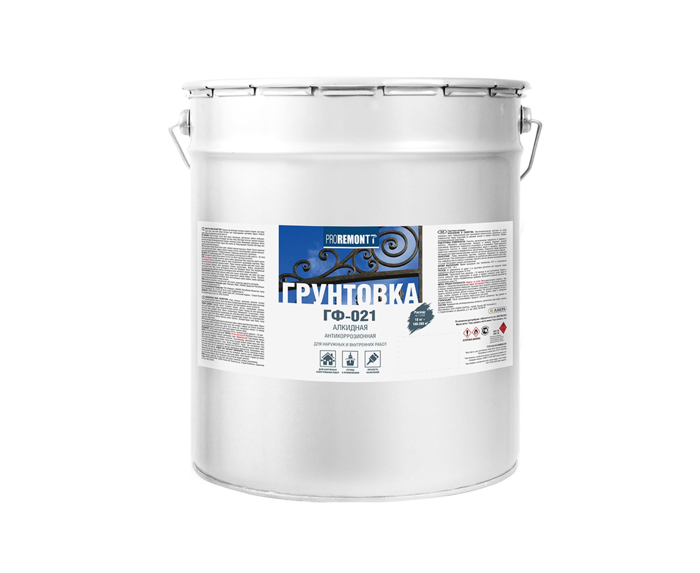 Грунт PROREMONTT ГФ-021 серый, 18 кг Лк-00004522 предназначен для обработки поверхностей из металла и дерева внутри и вне помещений. Используется перед нанесением лакокрасочных покрытий.