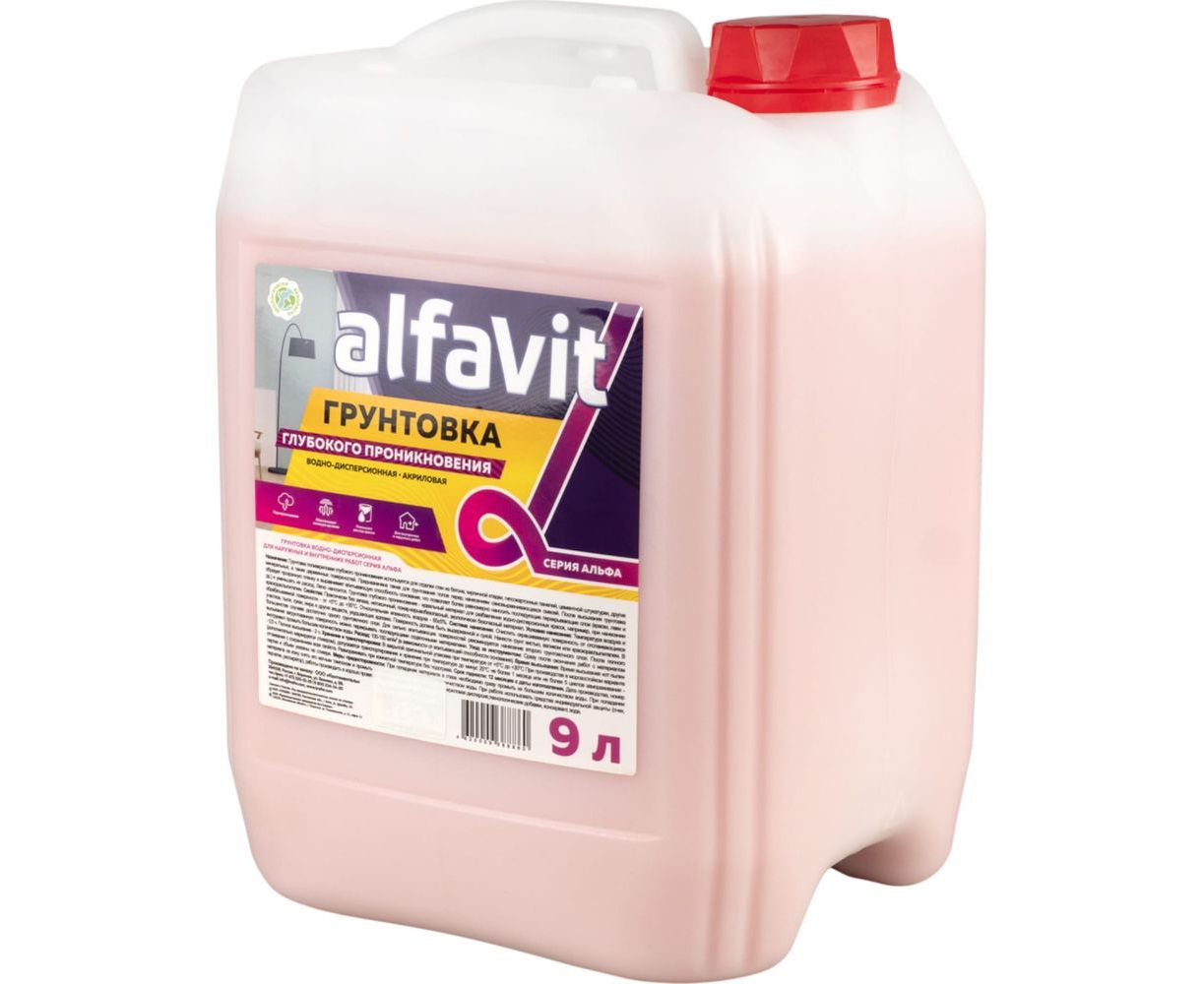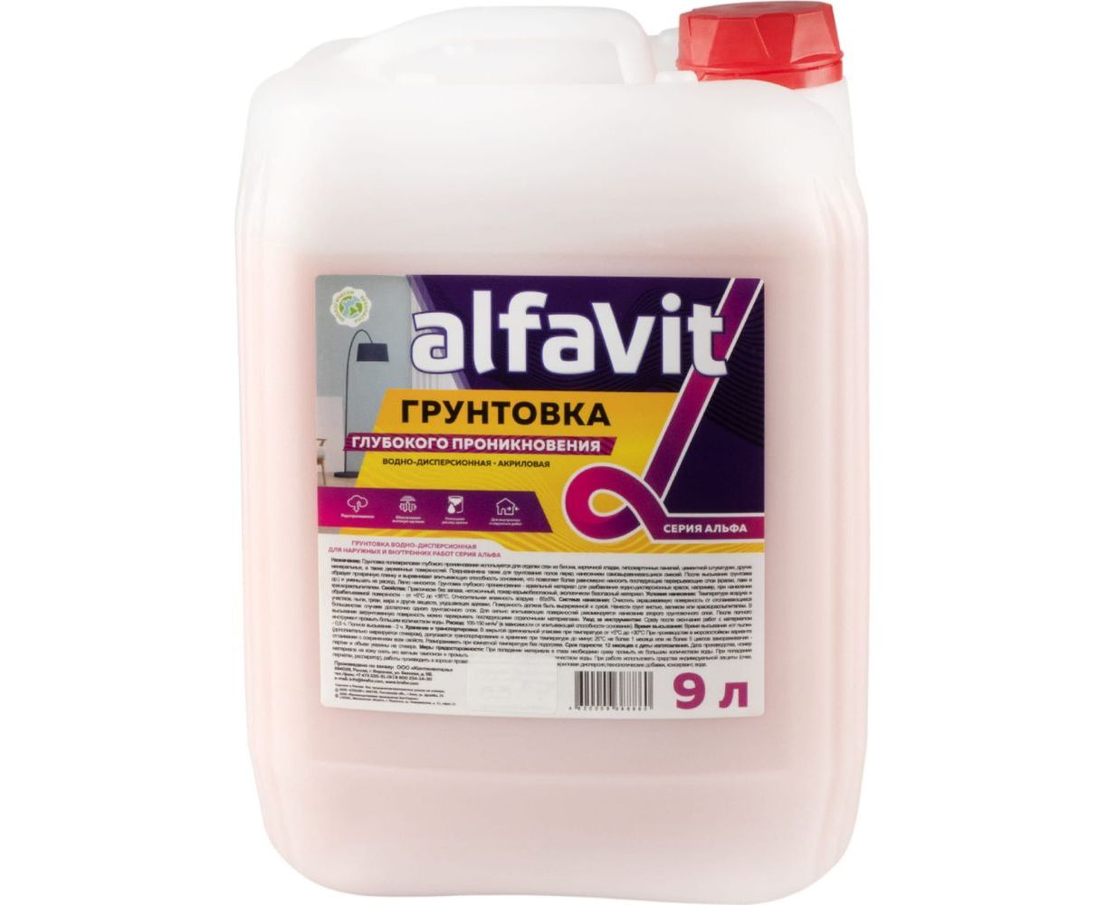 Грунтовка глубокого проникновения KRAFOR серия Альфа для наружных и внутренних работ, 9 л 129827 применяется для обработки минеральных оснований, деревянных поверхностей, цементных плит, кирпичной кладки и гипсокартонных панелей. Способствует увеличению адгезии.