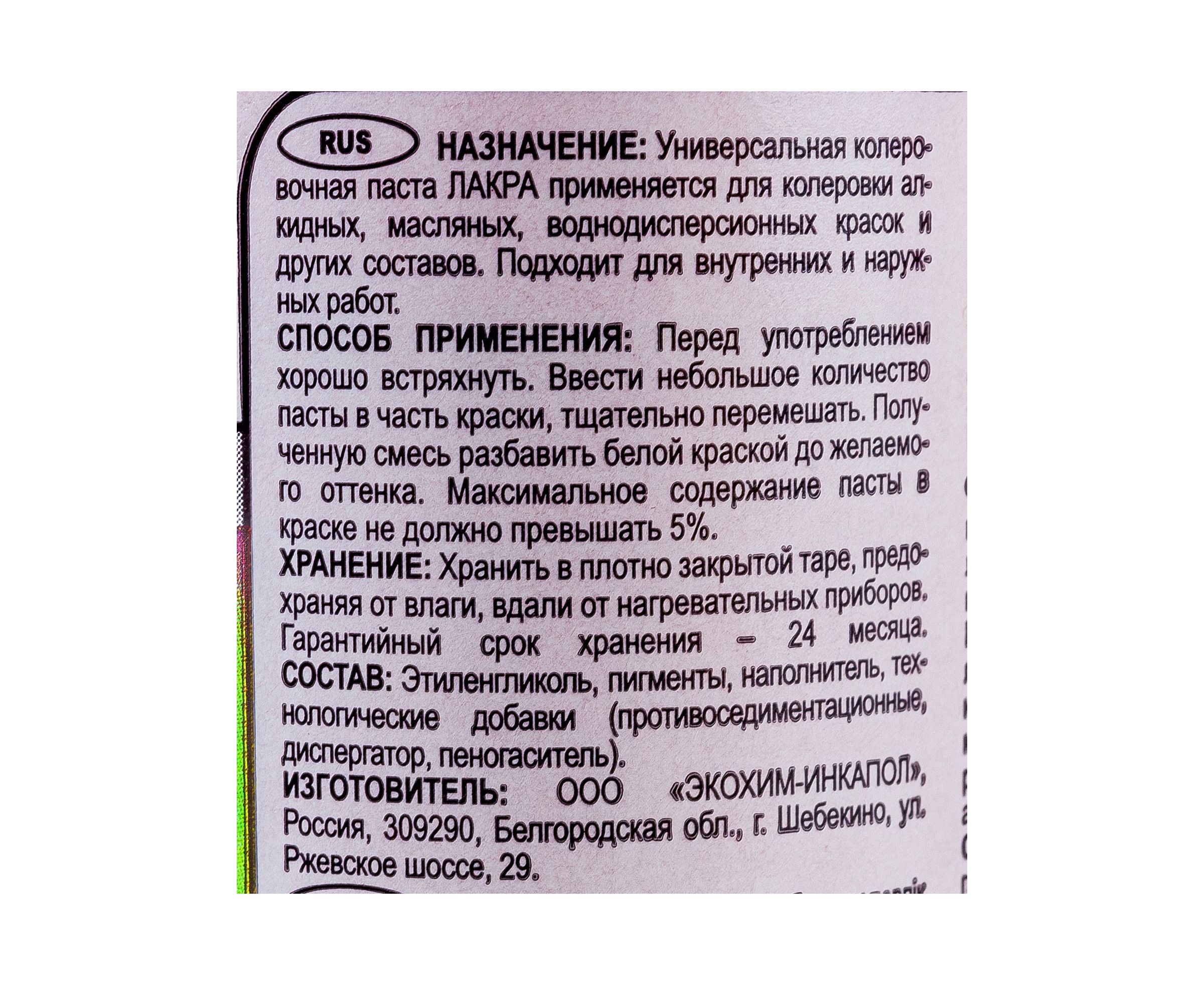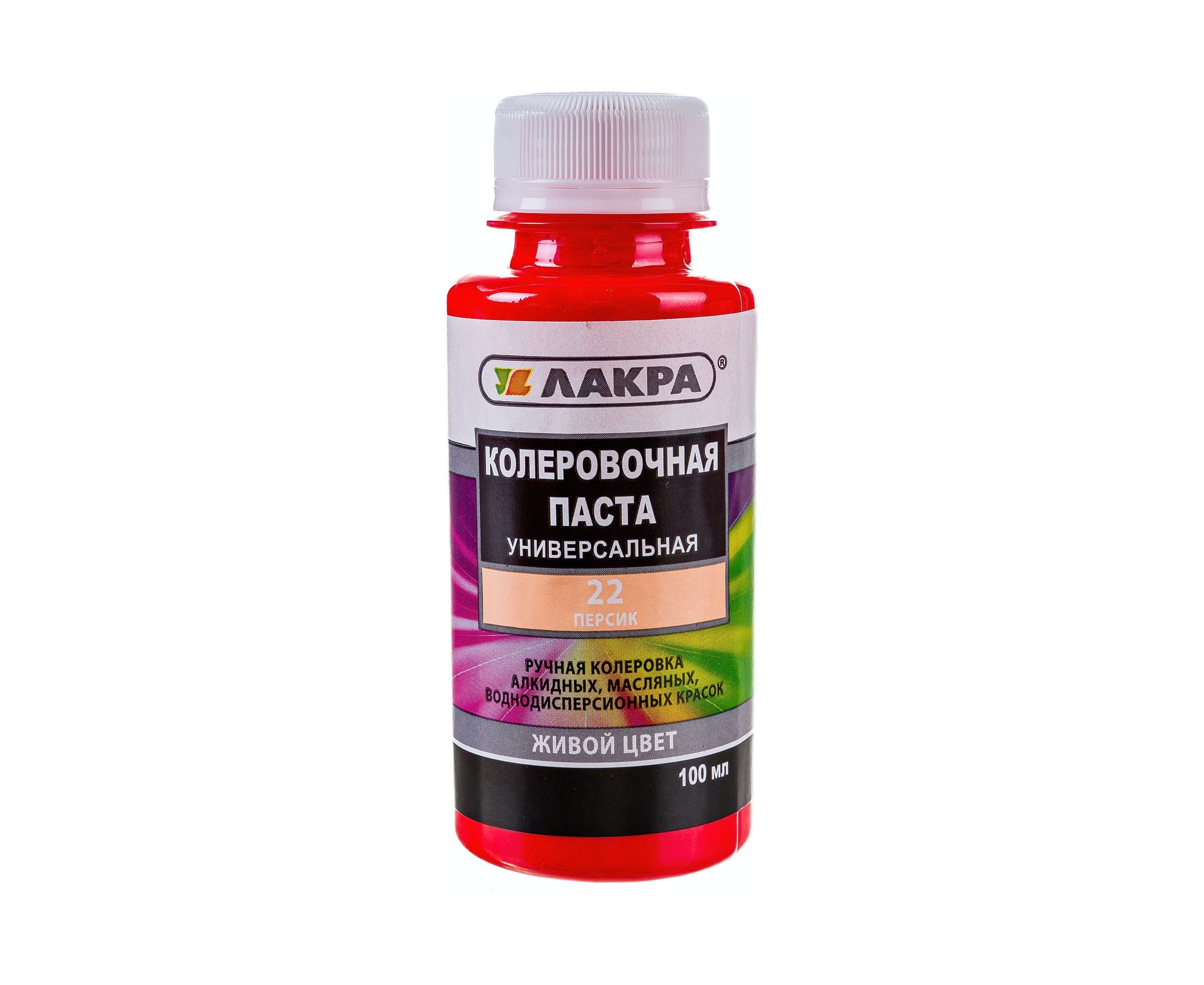 Колер № 22 Лакра персик, 100 мл Лк-00010012 используется для создания необходимого оттенка цвета.