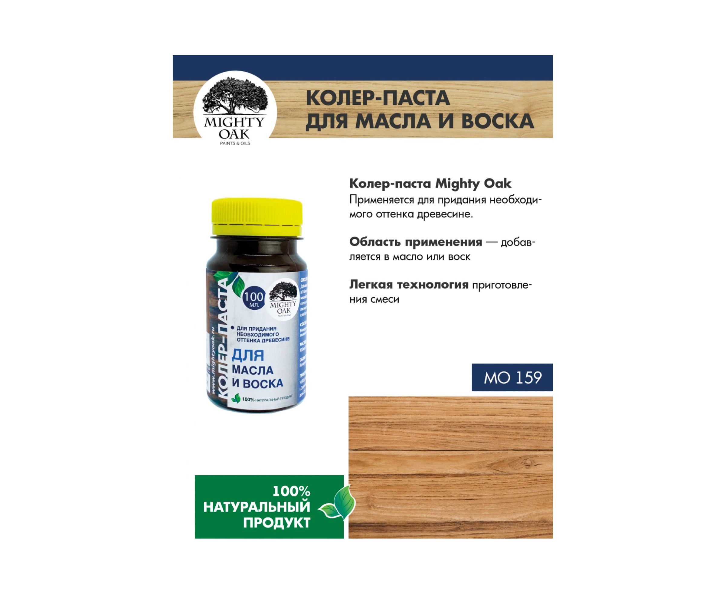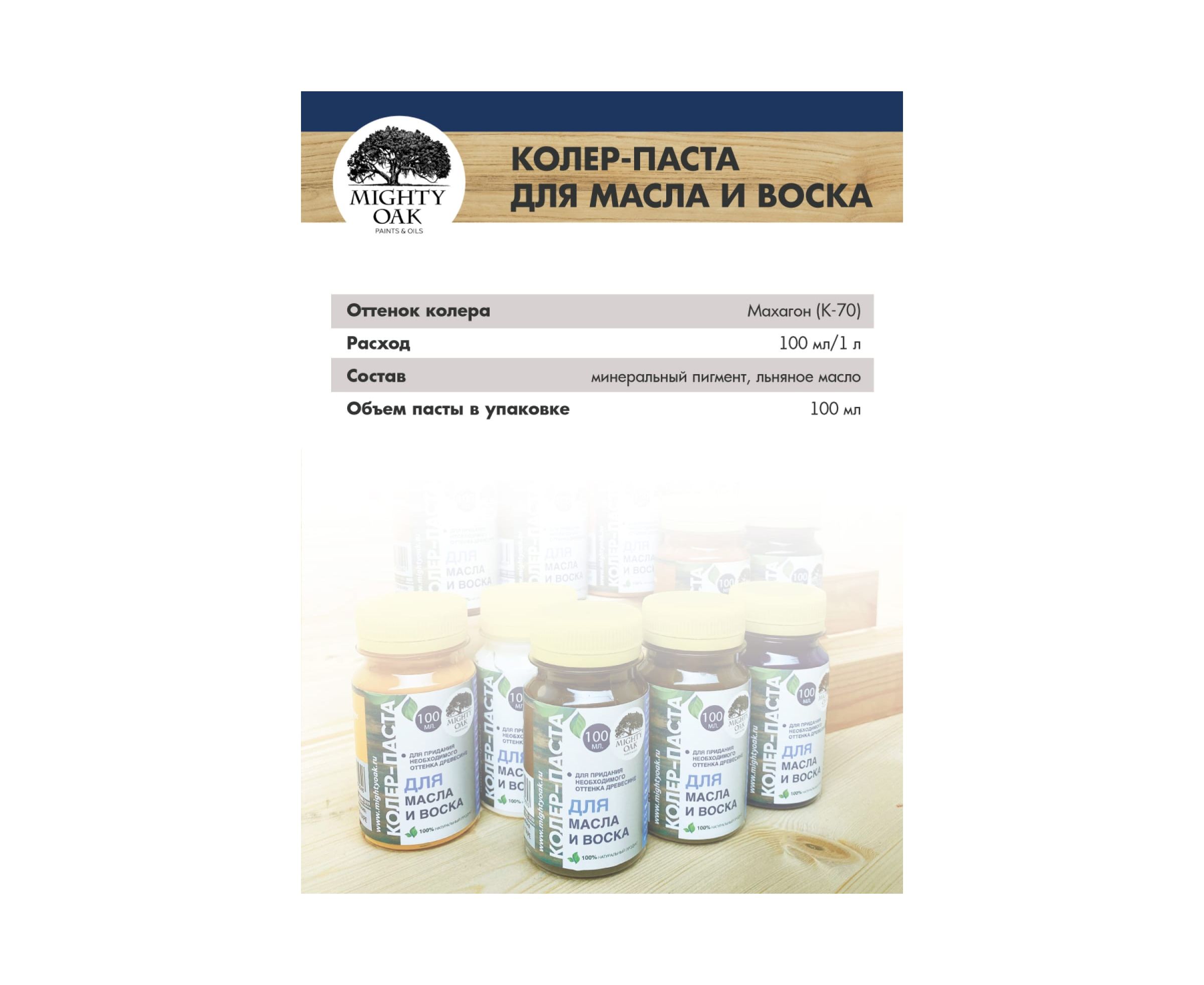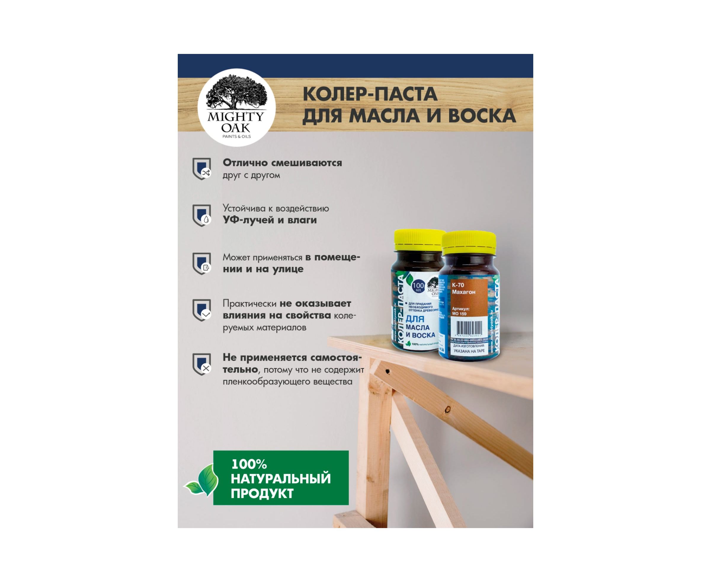 Колер-паста MIGHTY OAK (махагон; 0,1 л) МО159 предназначена для придания необходимого оттенка древесине. Подходит для колеровки масла и воска.