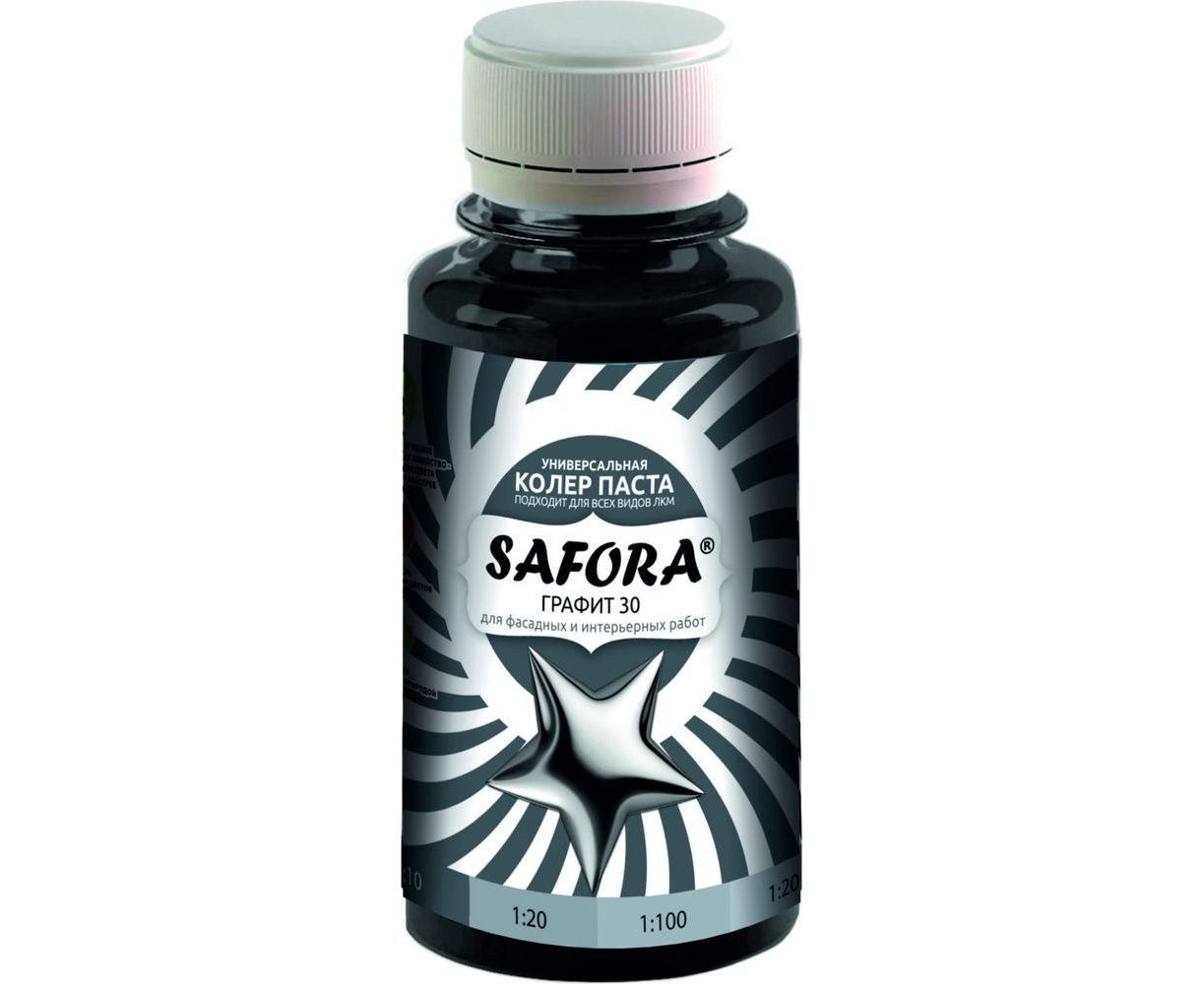 Колеровочная паста SAFORA 30 графит 100 мл 30 придаст краскам и ЛКМ необходимый цвет или оттенок. Совместим со всеми видами красок ВД, МА, ПФ, НЦ.