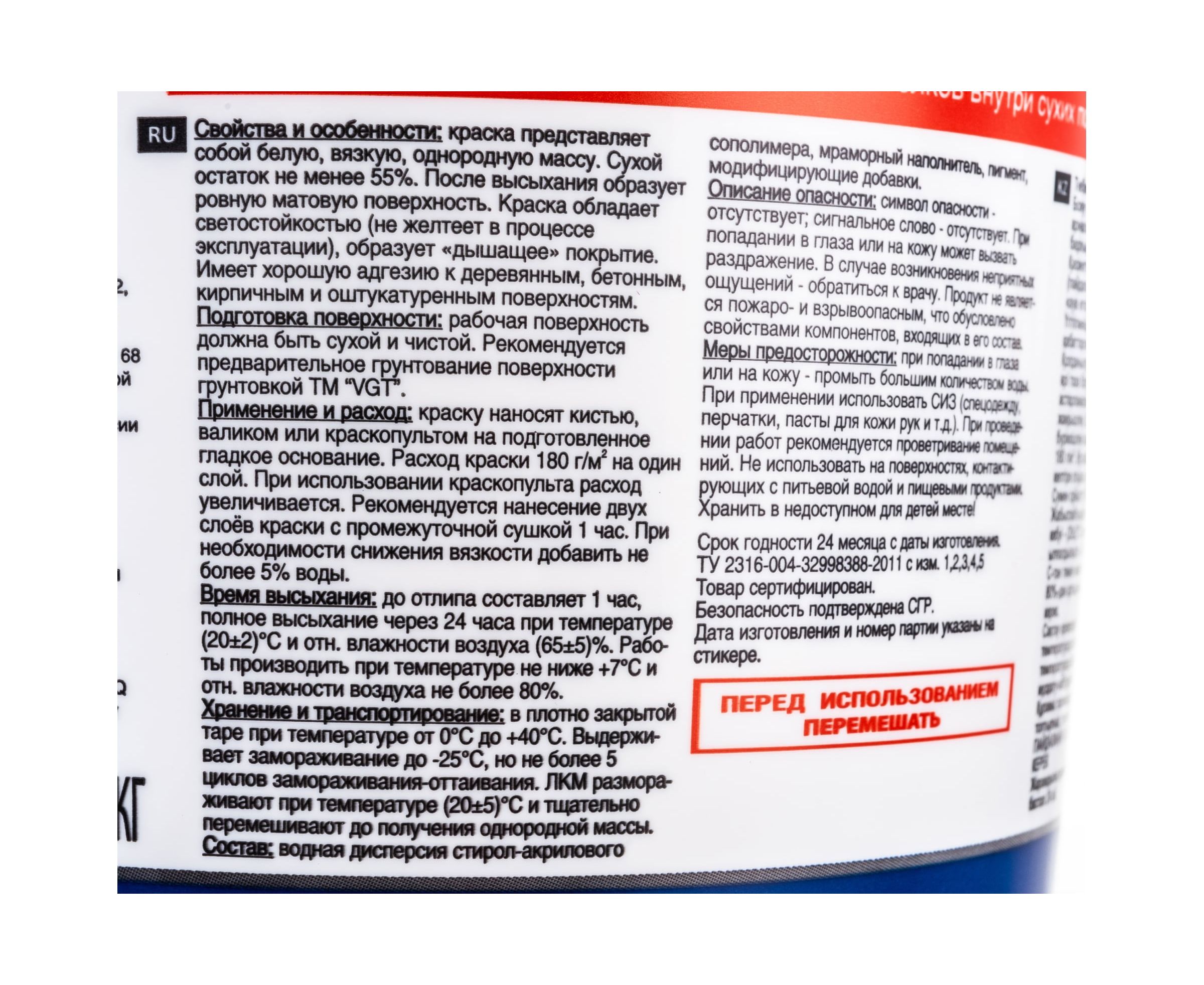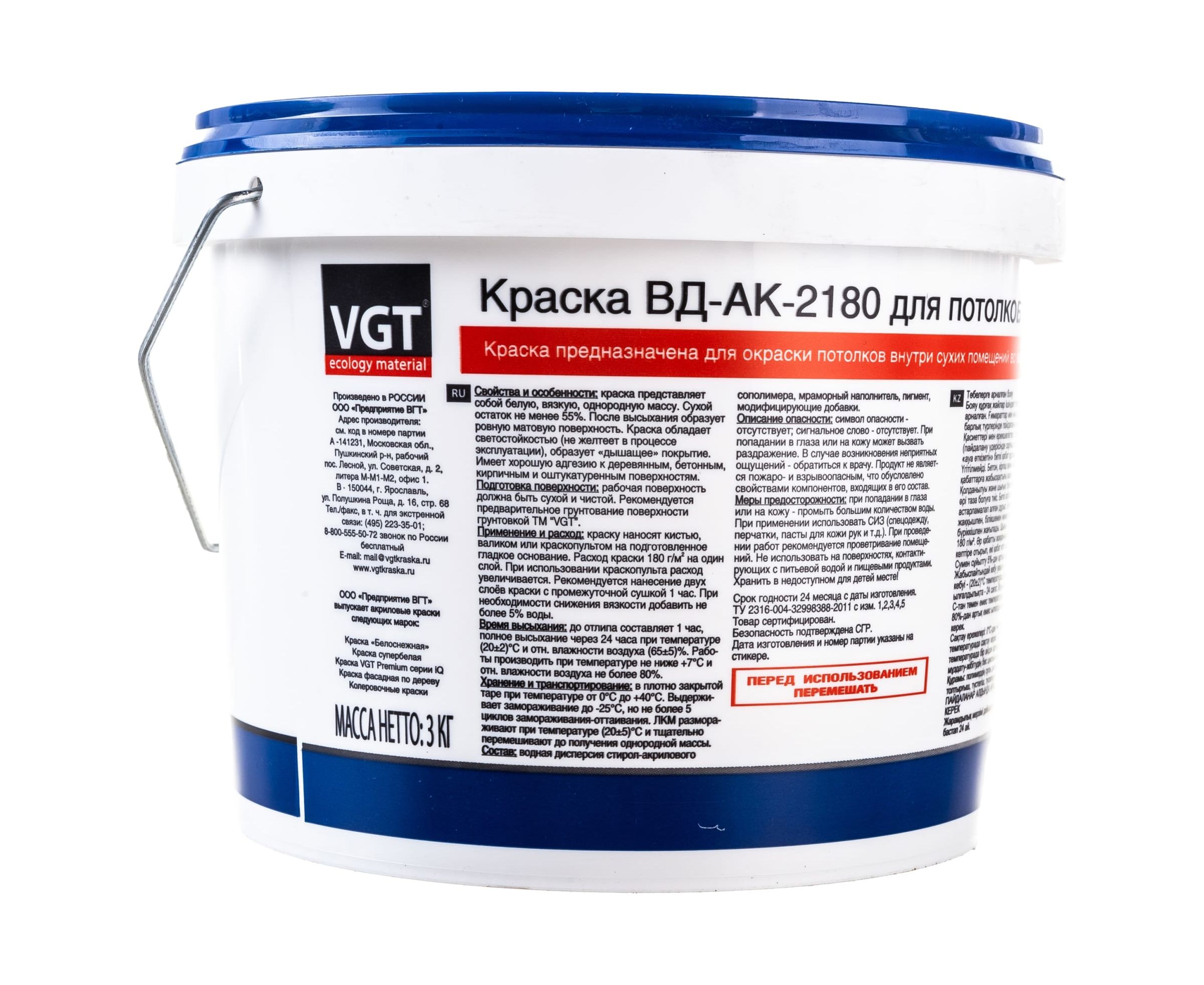 Краска для потолков VGT белоснежная ВД АК 2180 3кг 11602867