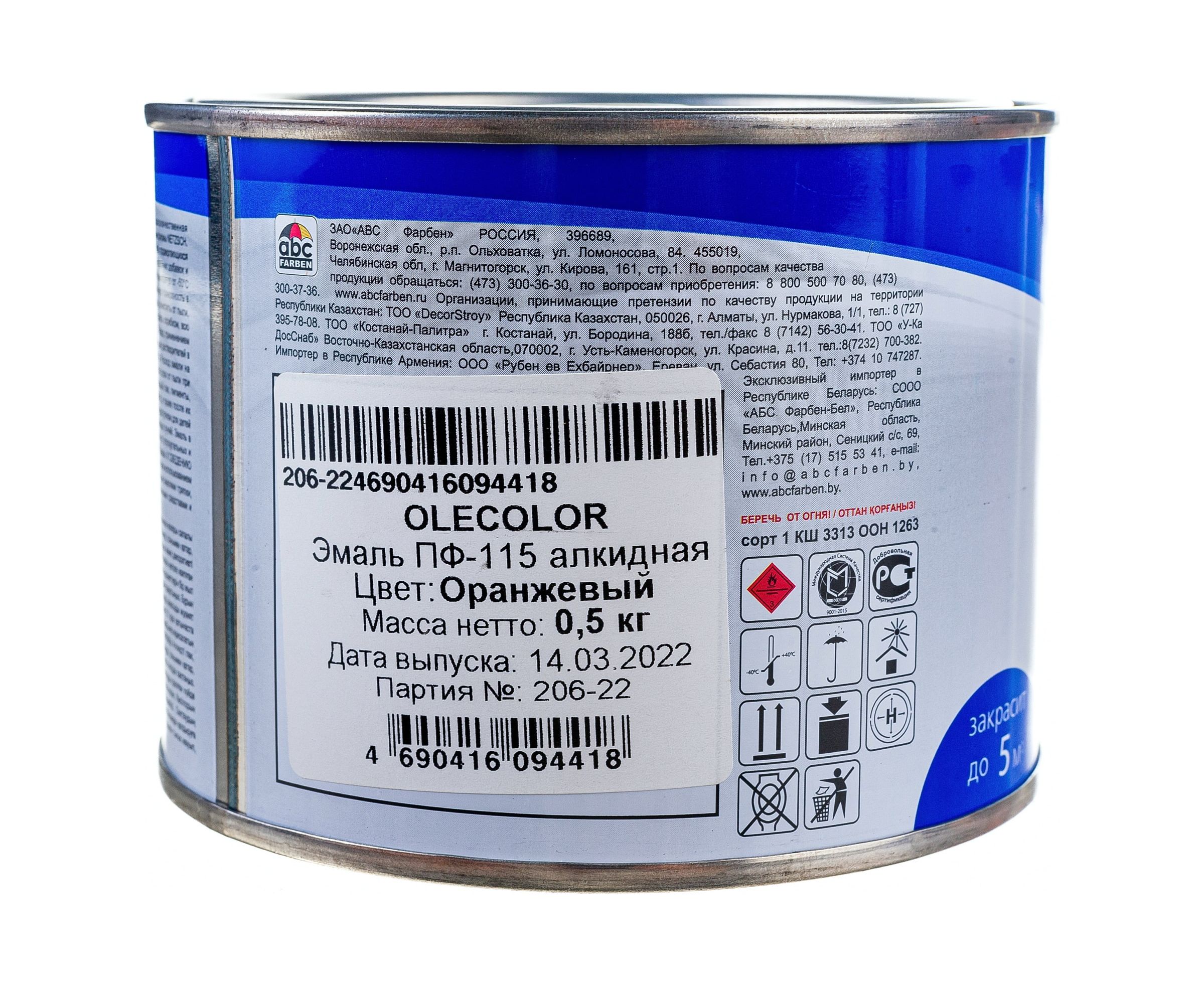 Эмаль OLECOLOR ПФ-115 оранжевый, 0.5 кг 4300005240 предназначена для обработки деревянных, металлических и других поверхностей, подвергающихся атмосферным воздействиям, а также для окраски внутри помещений.