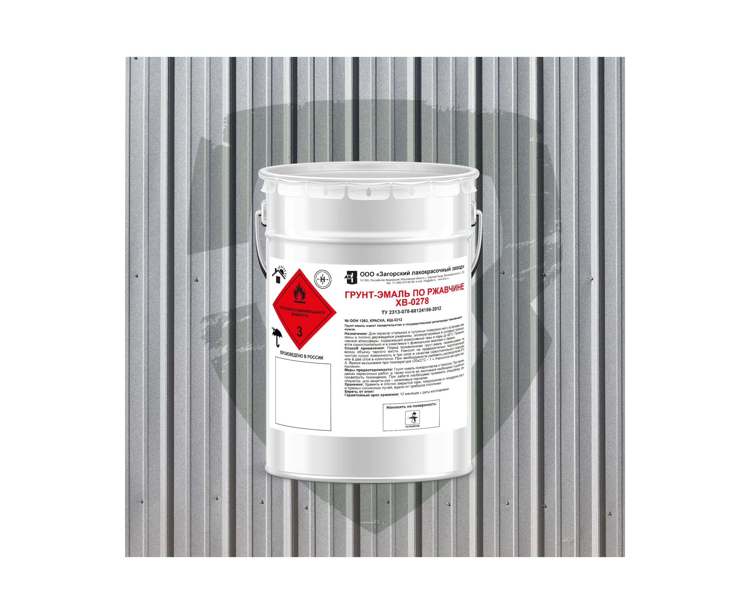 Грунт-эмаль по ржавчине ЗАГОРСКИЙ ЛАКОКРАСОЧНЫЙ ЗАВОД ХВ-0278 серая 10 кг ZLK05351 предназначена для защитно-декоративного окрашивания стальных и чугунных поверхностей с остатками окалины и ржавчины (толщина коррозии до 70 мкм).