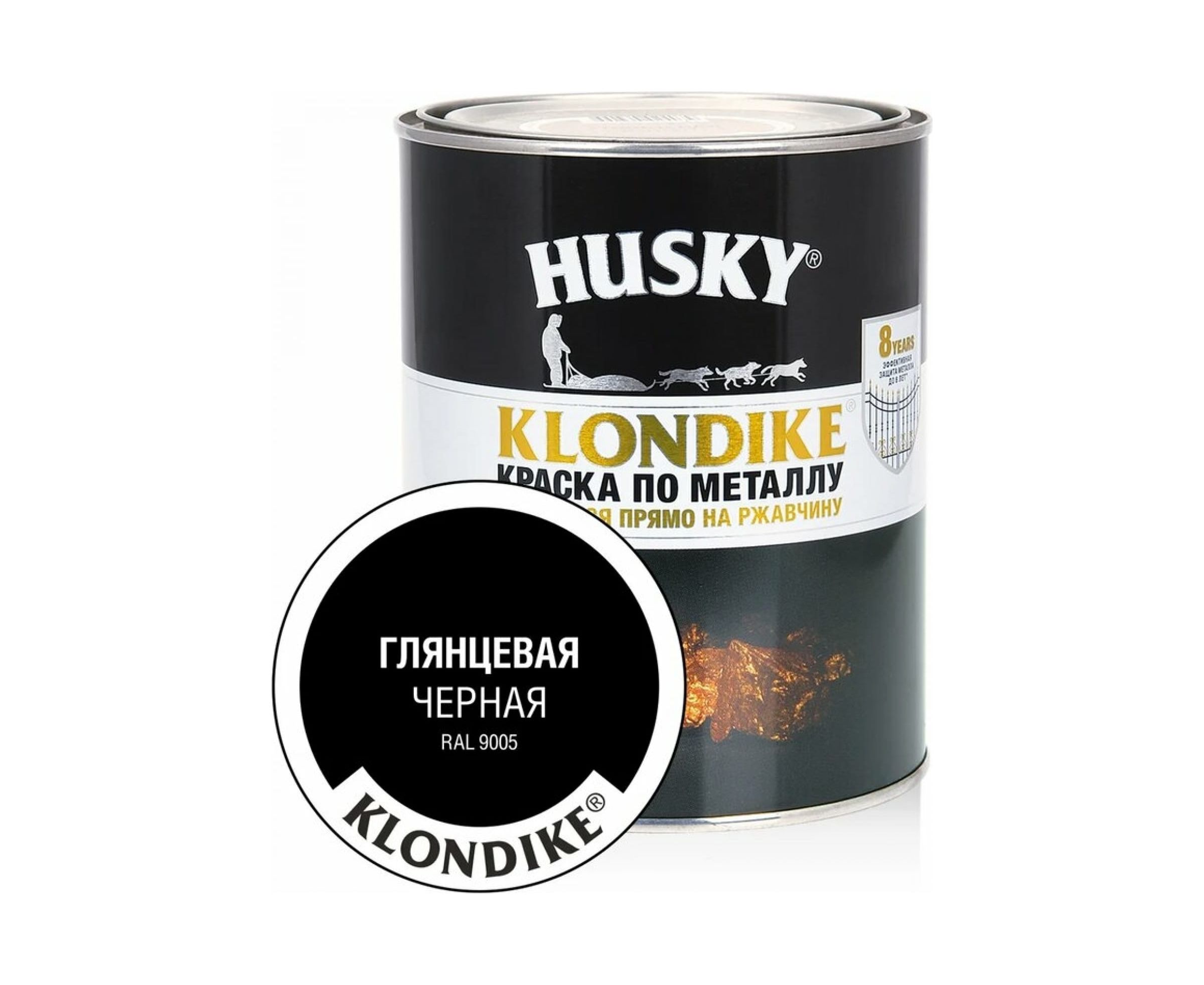 Краска по металлу HUSKY KLONDIKE (глянцевая; черная RAL 9005; 0.9 л) 25616