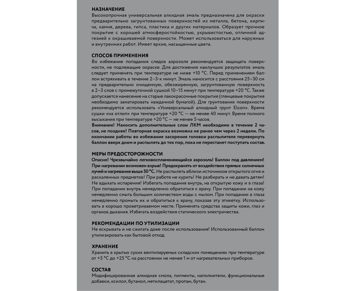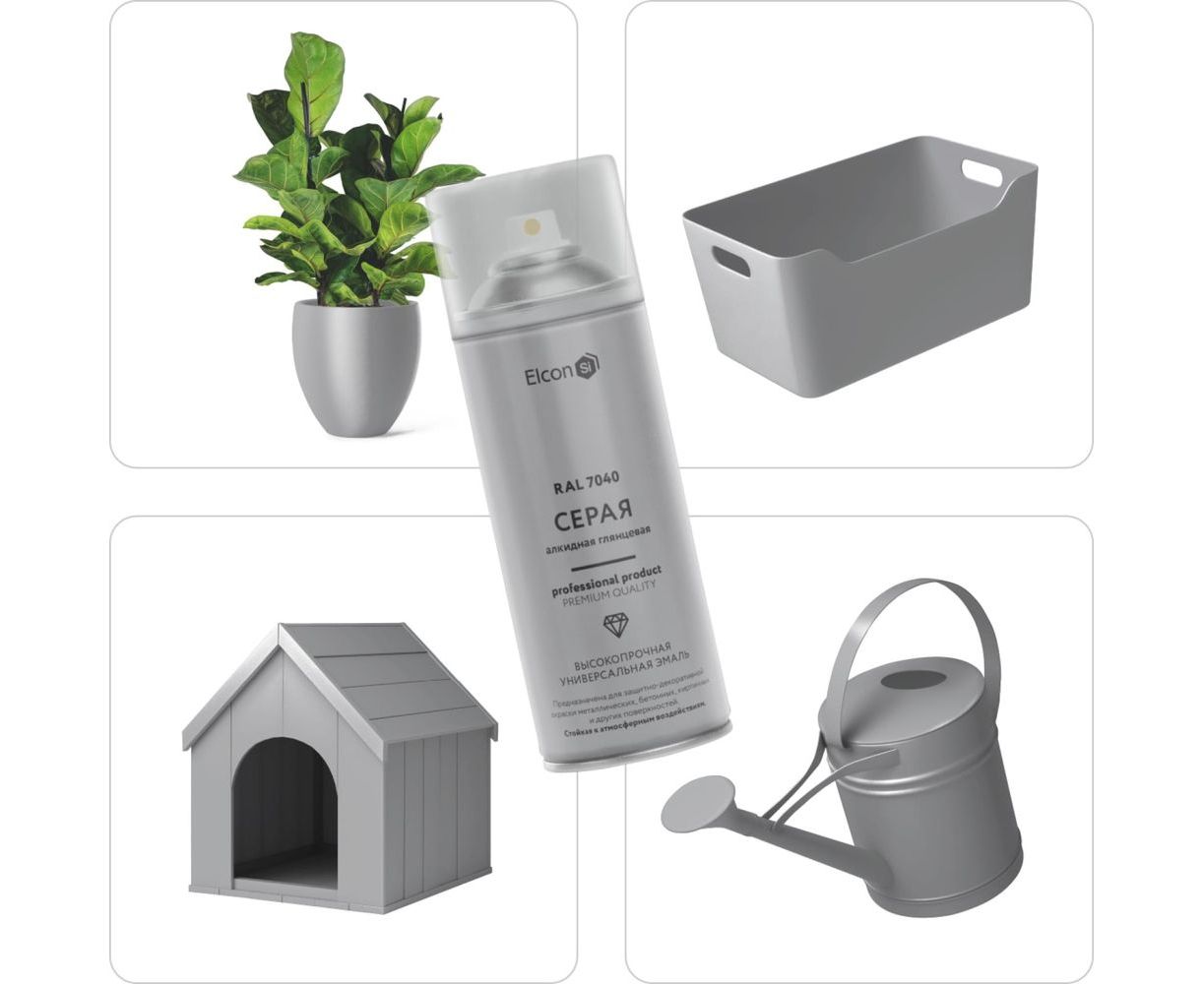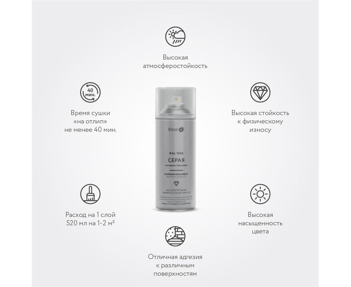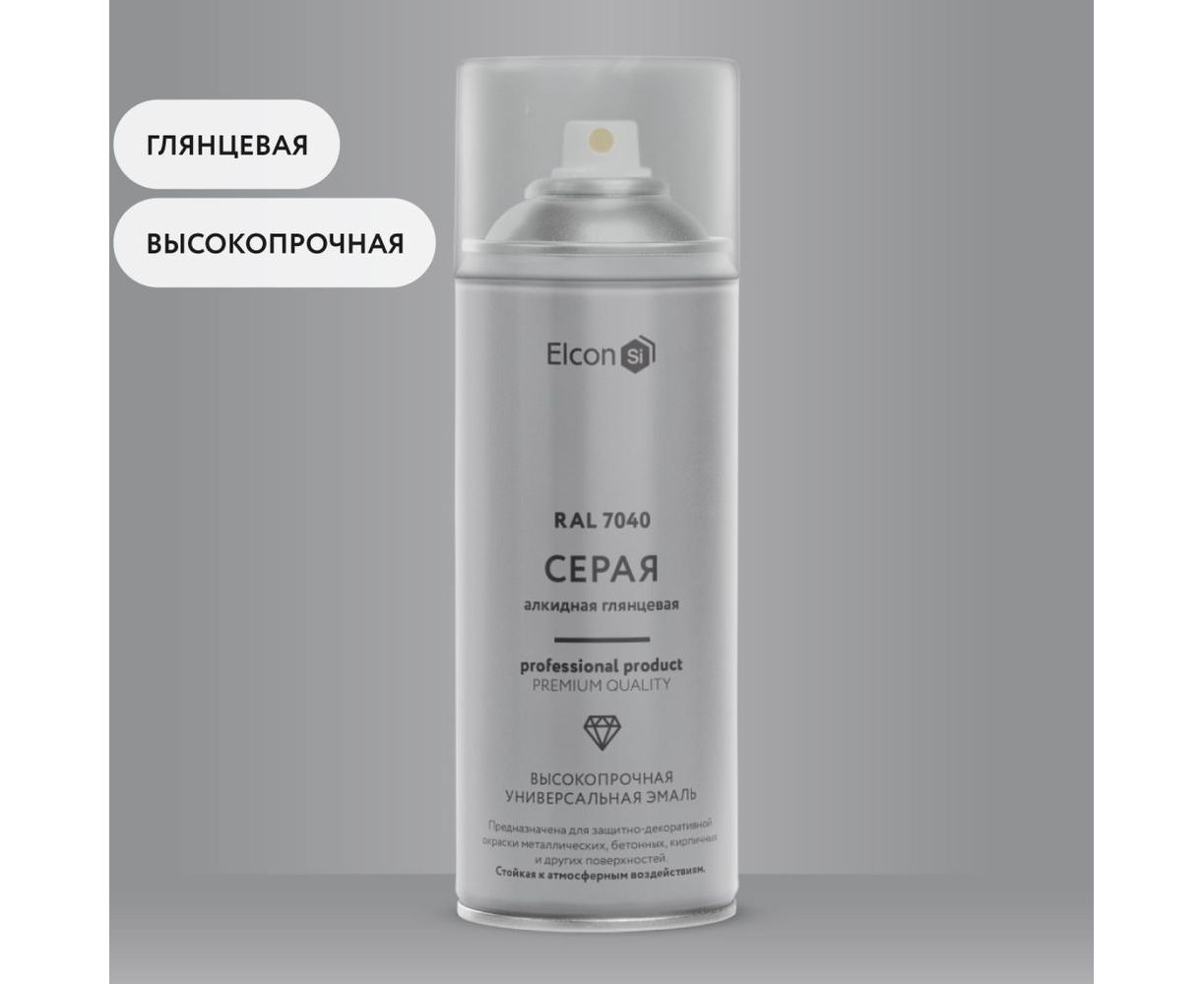 Универсальная алкидная эмаль Elcon ral 7040, серая, глянцевая, аэрозоль, 520 мл 00-00463207