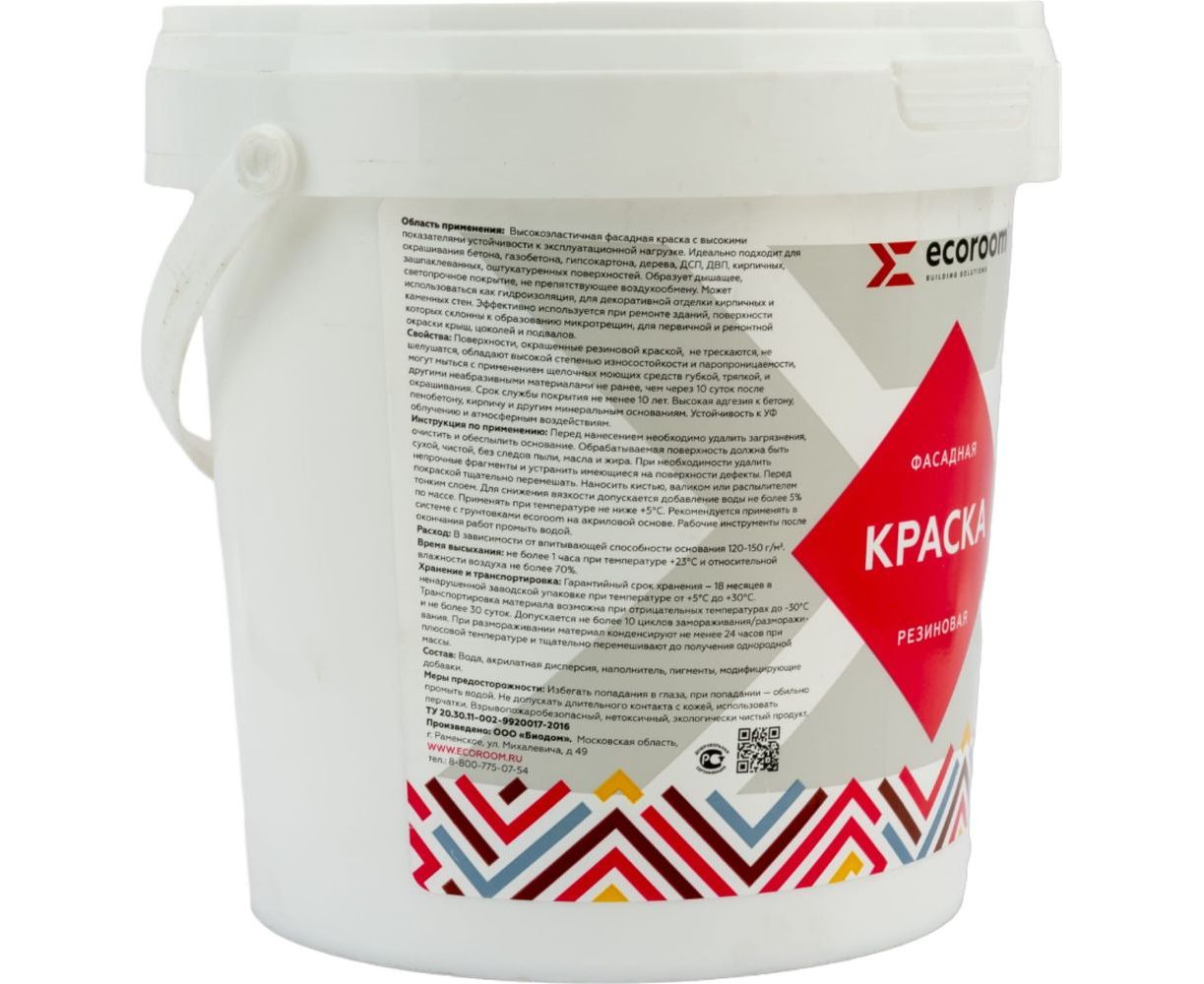 Резиновая фасадная краска ECOROOM супербелый, 1.3 кг Е-Кр -3583/бел