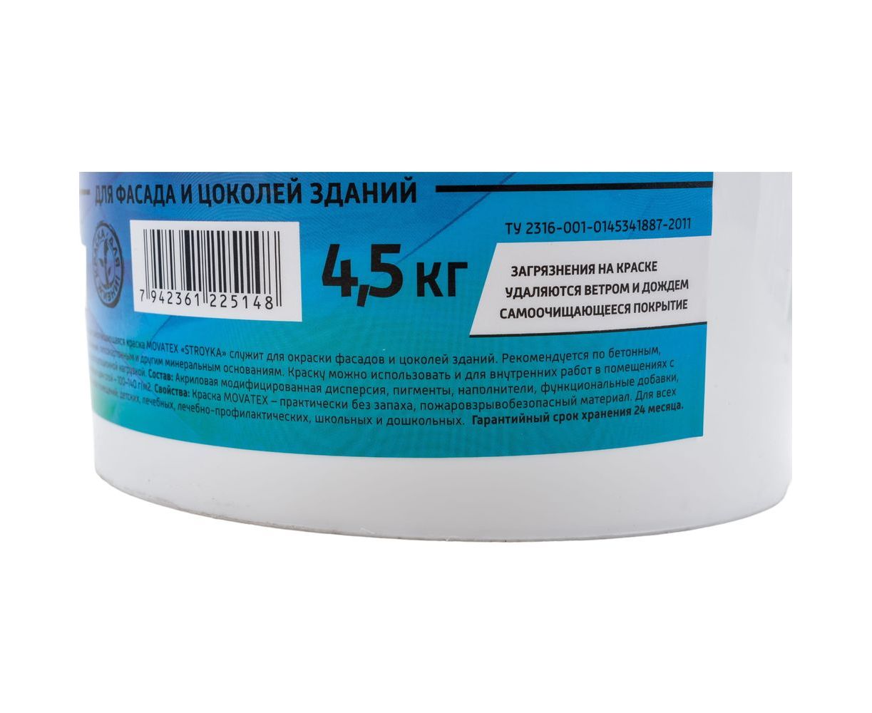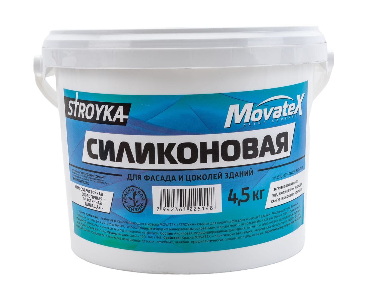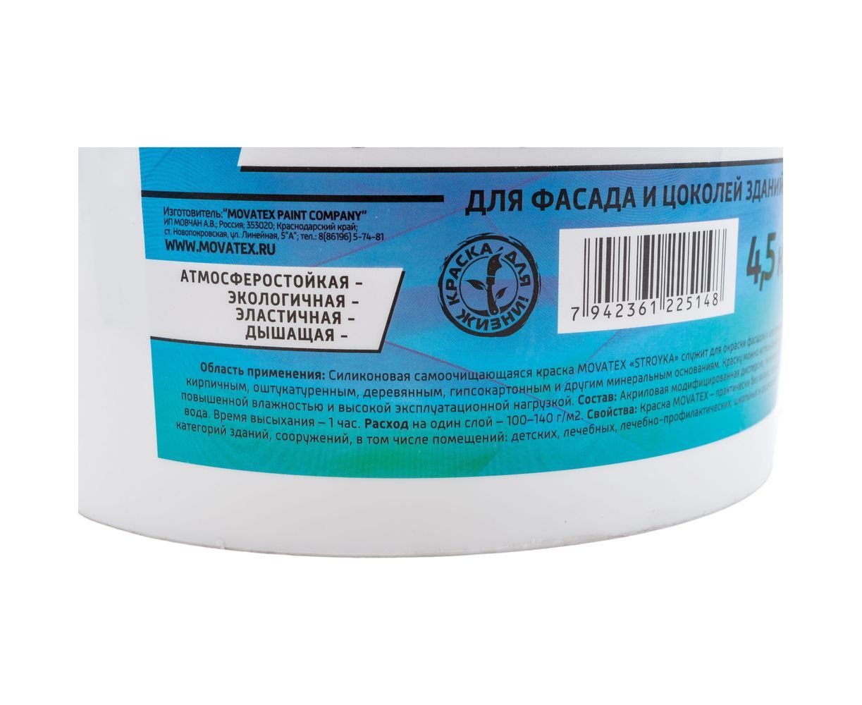 Водоэмульсионная краска Movatex Stroyka силиконовая, 4.5 кг Т94938