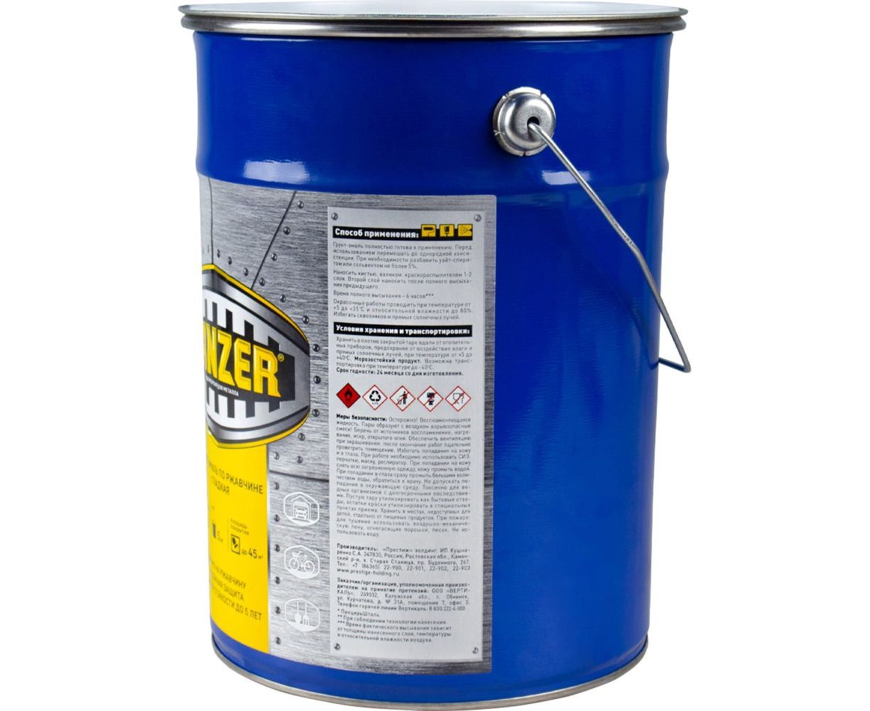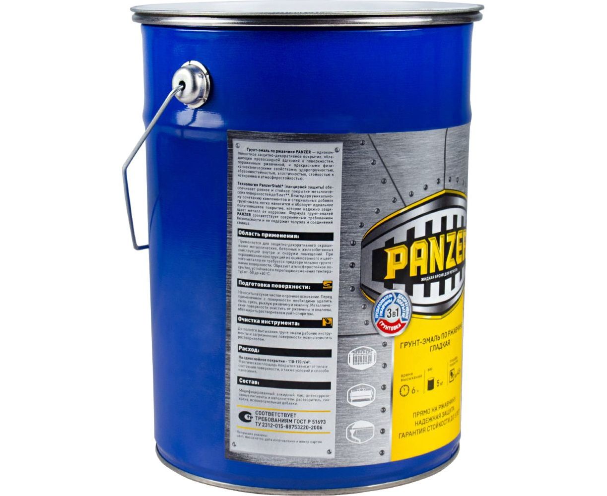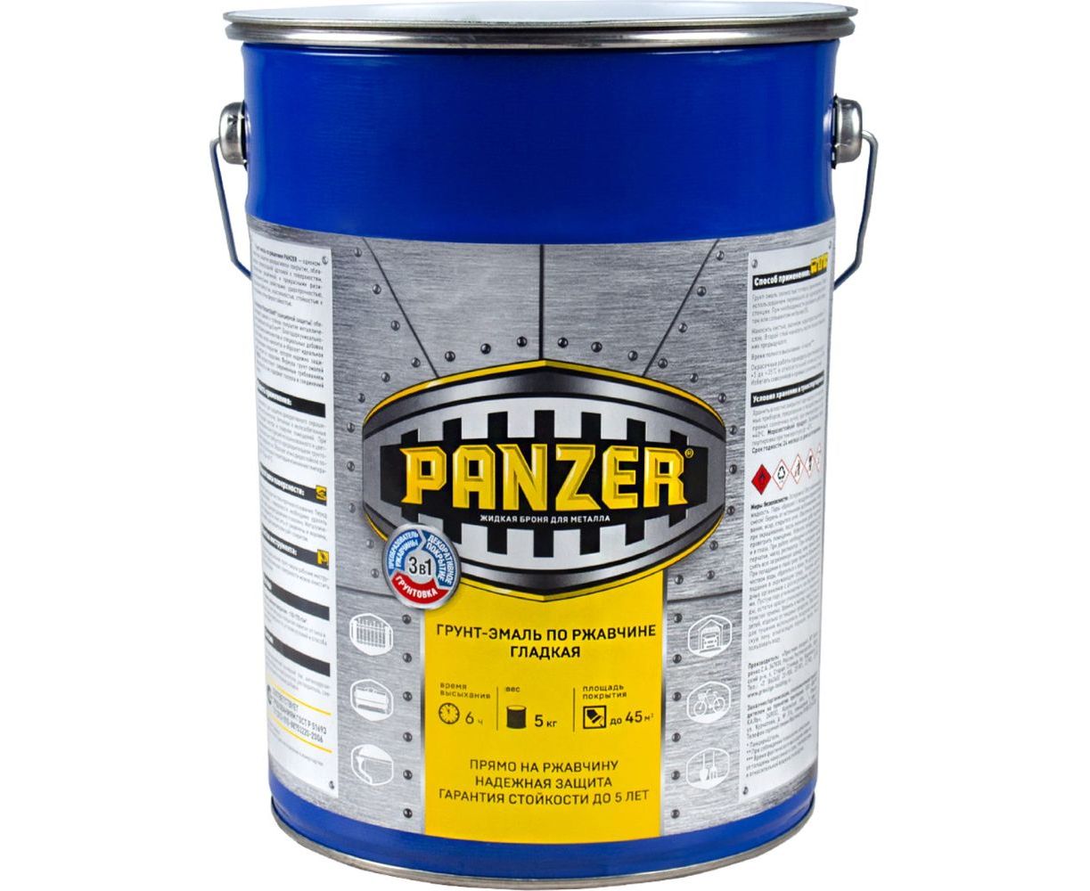 Грунт - эмаль PANZER по ржавчине 3 в 1 гладкая, красно-коричневая, 5 кг 219855 объединяет свойства 3 продуктов: преобразователя ржавчины, антикоррозионного грунта и декоративной эмали.