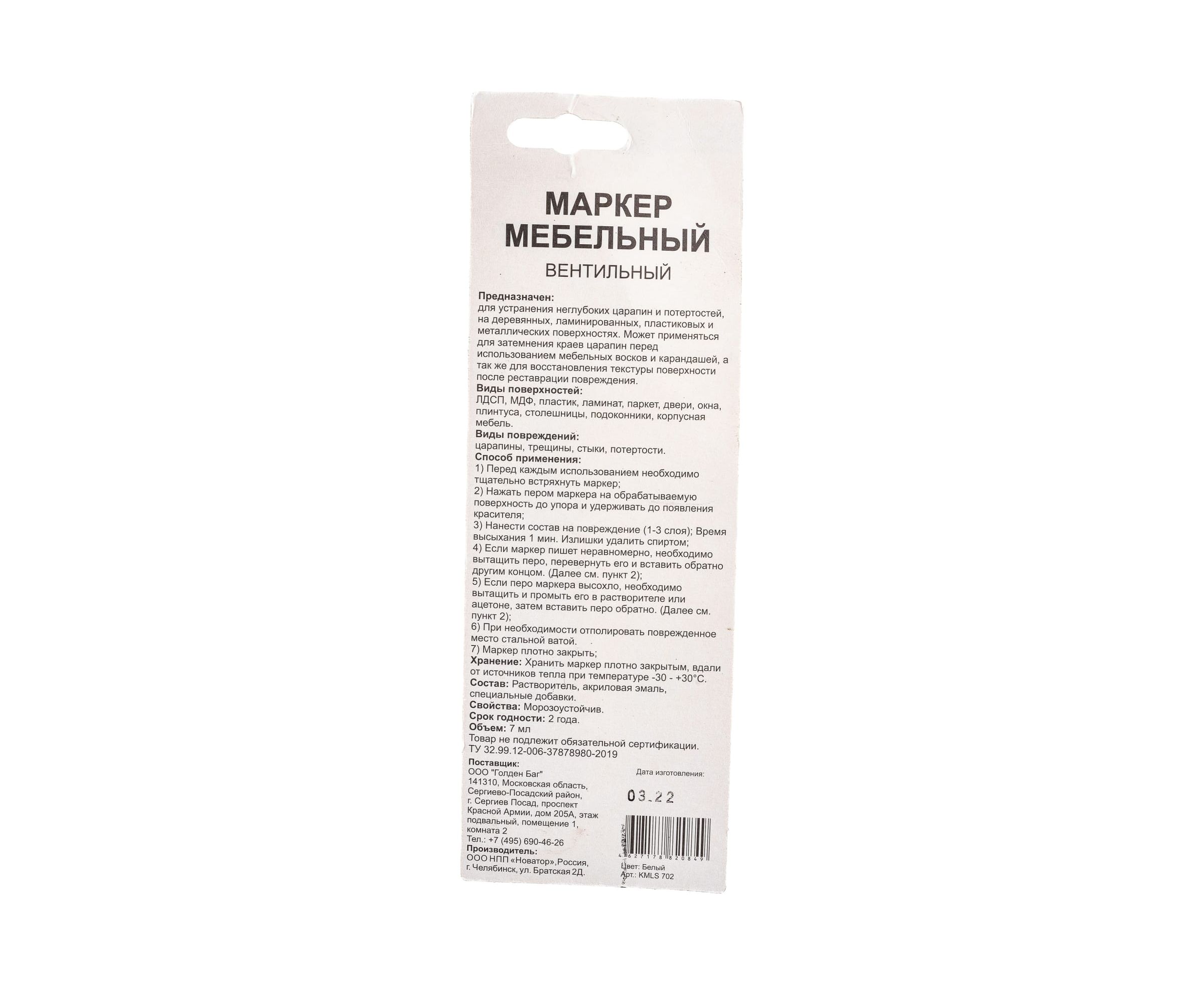 Мебельный вентильный маркер Molecules белый KMLS702 предназначен для быстрого и удобного устранения неглубоких царапин и потертостей на деревянных, ламинированных, пластиковых и металлических поверхностях. Может применяться для затемнения краев царапин перед использованием мебельных восков и карандашей, а так же для восстановления текстуры поверхности после реставрации повреждения.