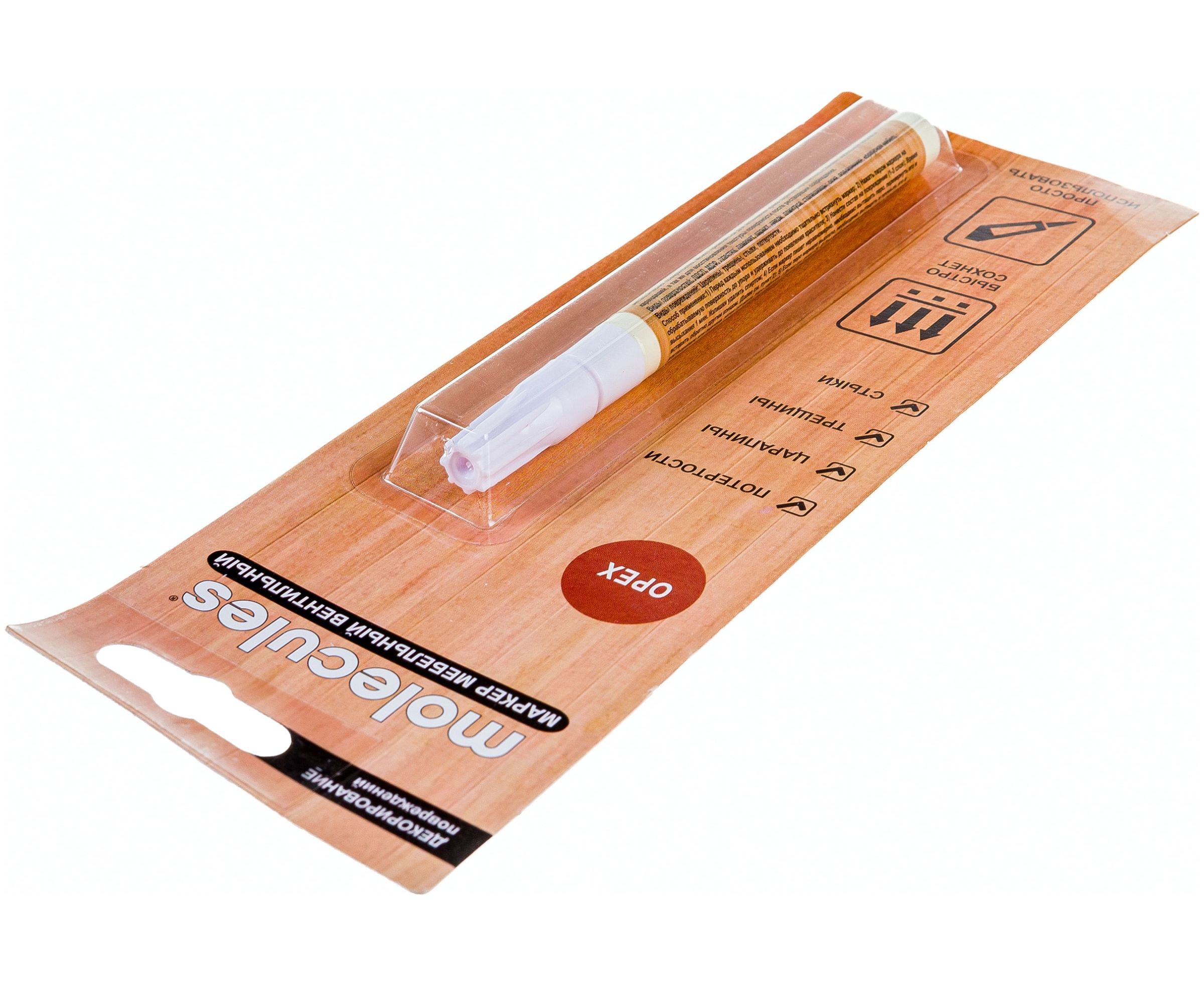 Мебельный вентильный маркер Molecules орех KMLS706 предназначен для быстрого и удобного устранения неглубоких царапин и потертостей на деревянных, ламинированных, пластиковых и металлических поверхностях. Может применяться для затемнения краев царапин перед использованием мебельных восков и карандашей, а так же для восстановления текстуры поверхности после реставрации повреждения.