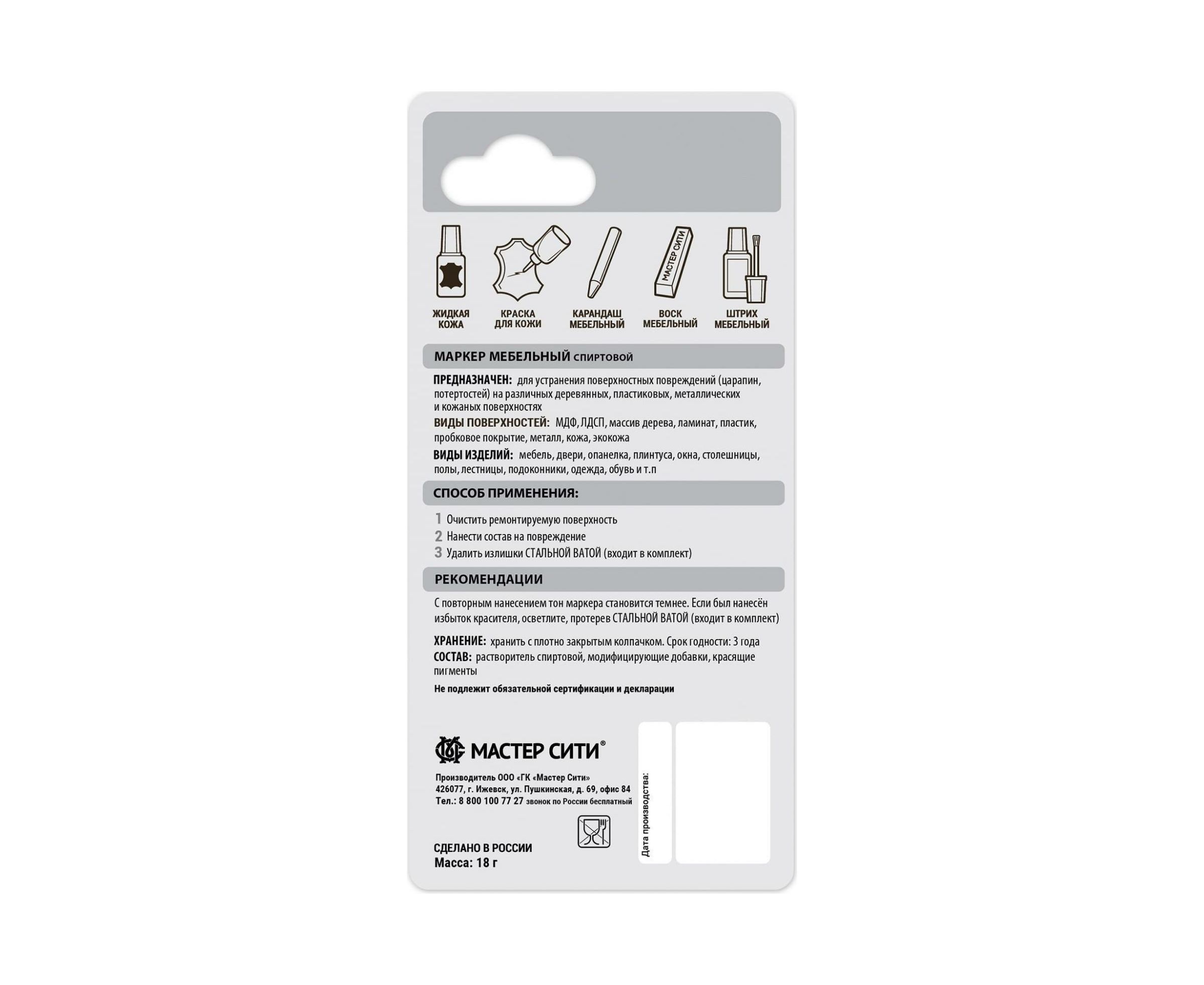 Мебельный спиртовой маркер Мастер Сити (блистер; дуб) 2051303 предназначен для быстрого закрашивания поверхностных повреждений (потертости, царапины) на деревянных и кожаных поверхностях, не подверженных интенсивной эксплуатации. Виды поверхностей: МДФ, ЛДСП, фанера, массив дерева, ламинат, картон, пробковое покрытие, кожа, кожзаменитель, линолеум, керамика.