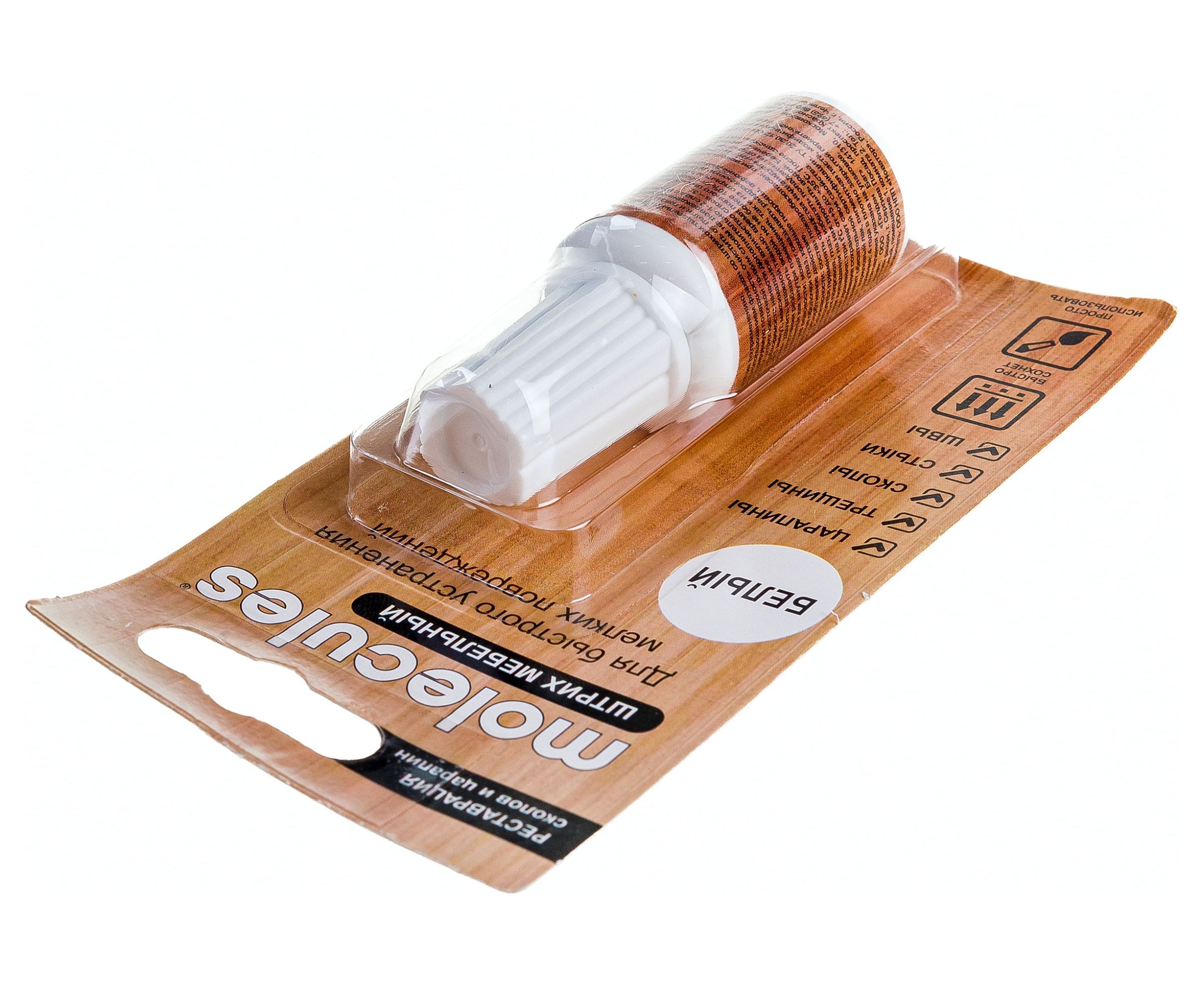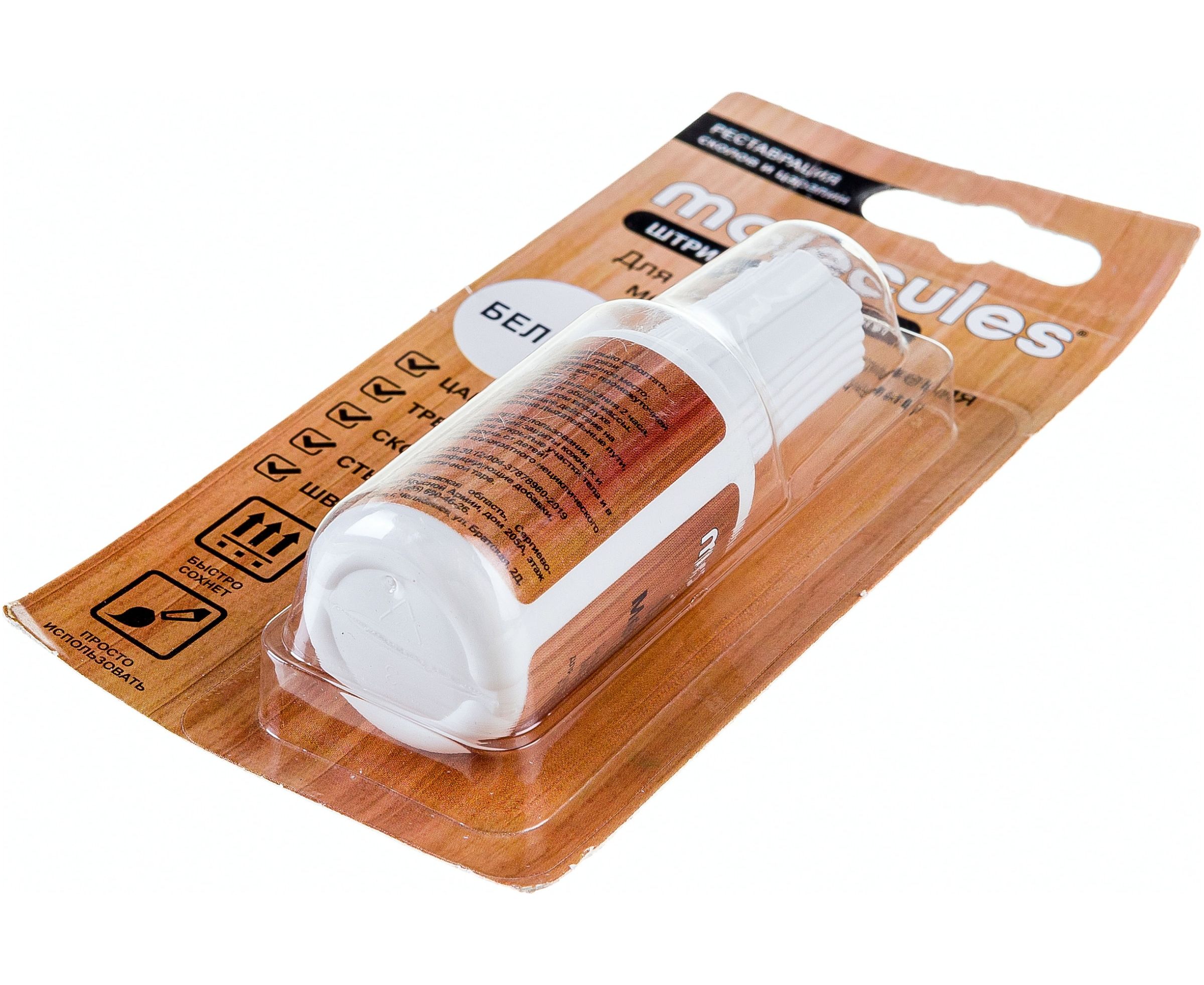 Штрих для реставрации сколов Molecules белый KMLS722 предназначен для быстрой и удобной заделки мелких ��овреждений на деревянных, ламинированных и пластиковых поверхностях, подверженных интенсивной эксплуатации. Прост в использовании, не требует особой техники нанесения, легко удалять.