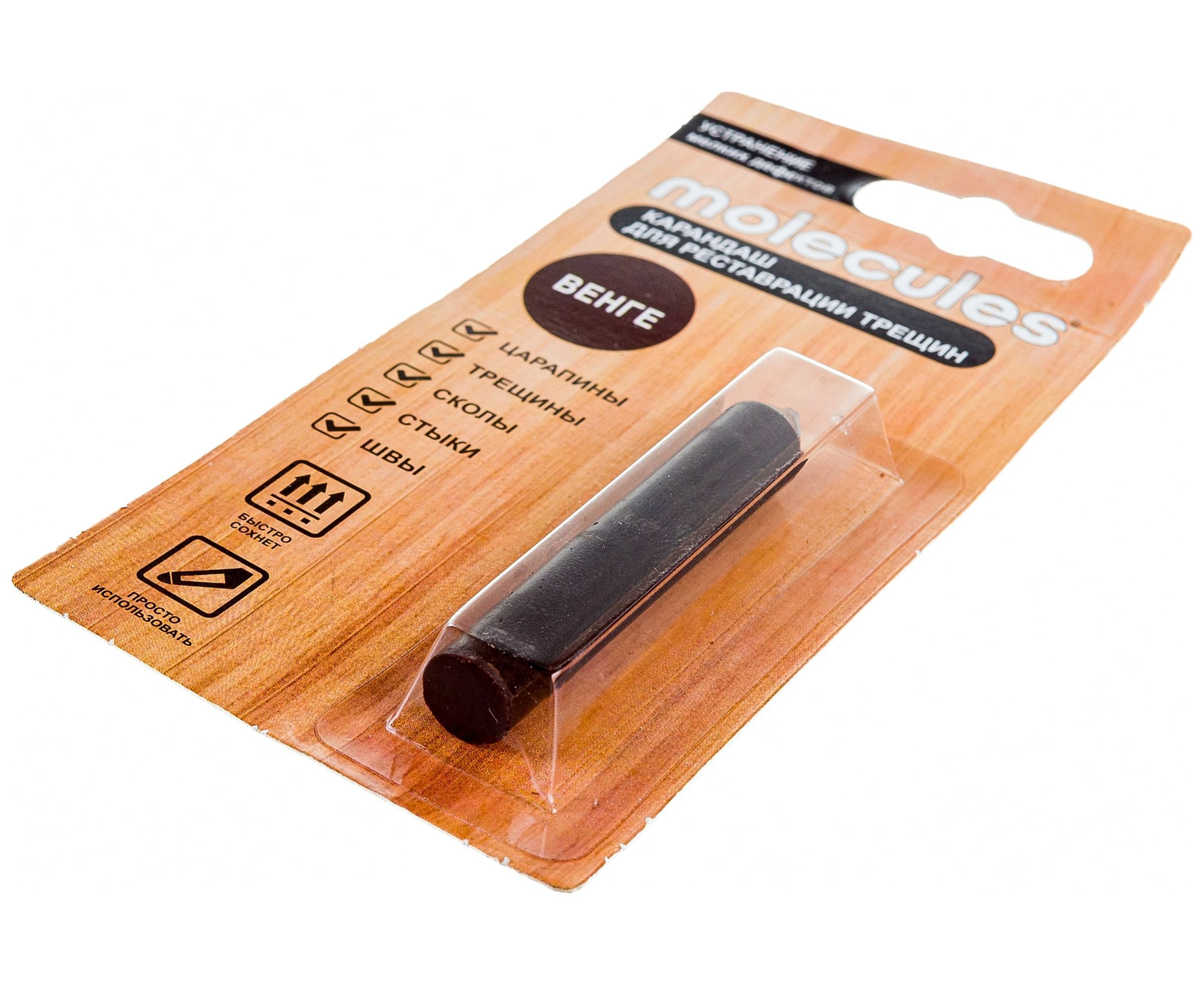 Восковой карандаш для реставрации трещин Molecules венге KMLS717 предназначен для быстрой заделки средних и самых маленьких дефектов: мелких царапин, трещин, и сколов на деревянных и ламинированных поверхностях, не подверженных интенсивной эксплуатации. Прост в использовании, не требует определенной техники нанесения, неограниченный срок годности.