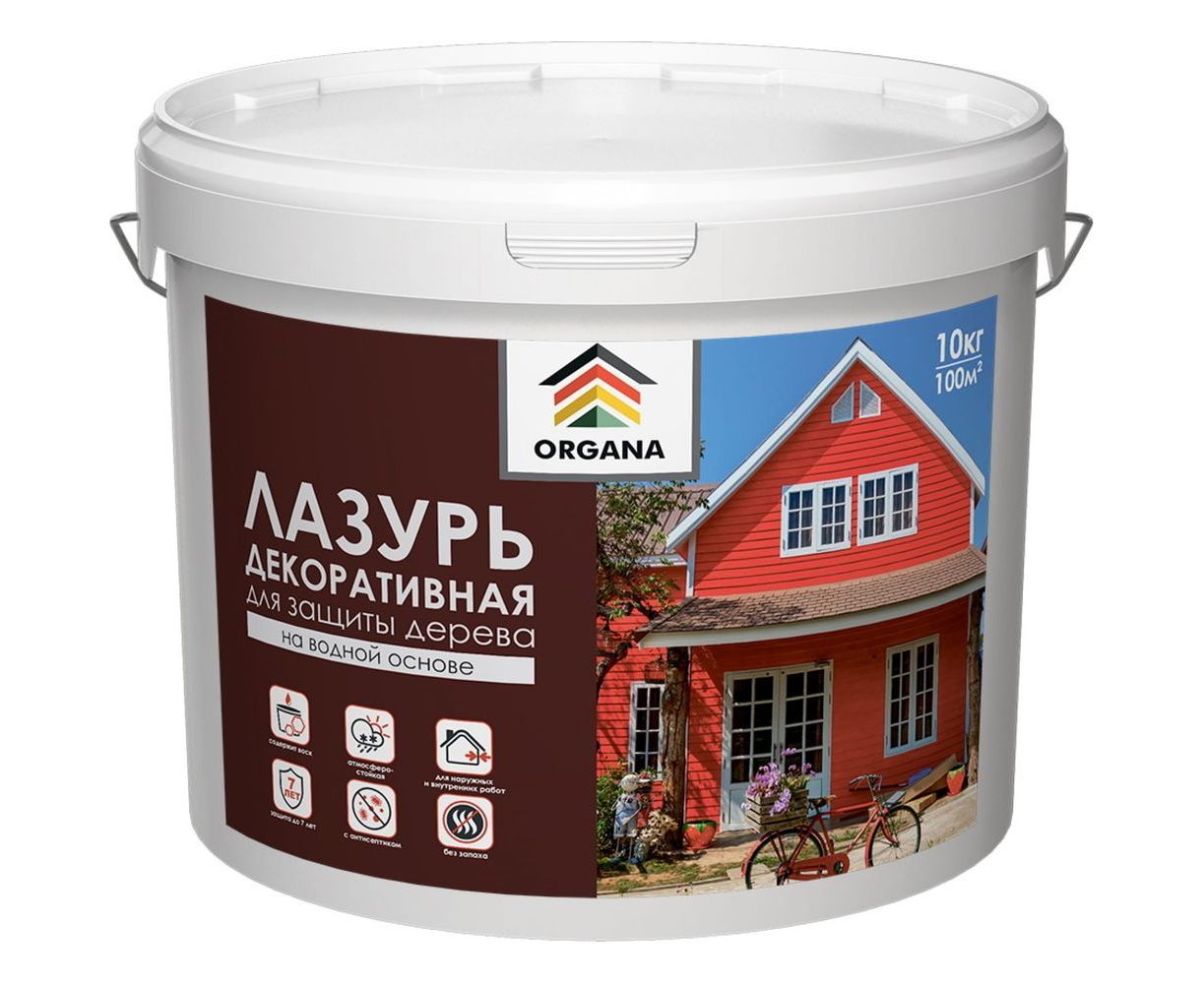 Декоративная лазурь Organa Сoloured Varnish 10 кг, асфальт 106855 используется для обработки деревянных поверхностей.