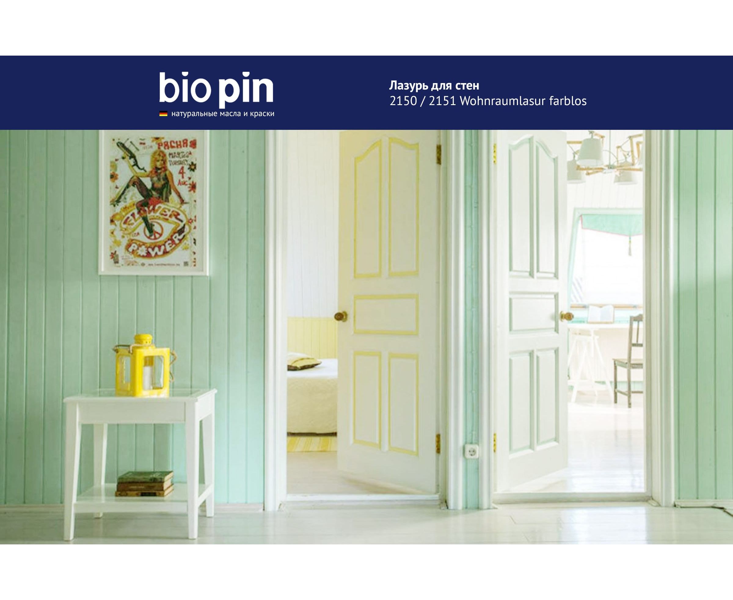 Лазурь для стен BIO PIN 2151 Wohnraumlasur СВЕТЛО-БИРЮЗОВЫЙ 0.75 л 21511H202