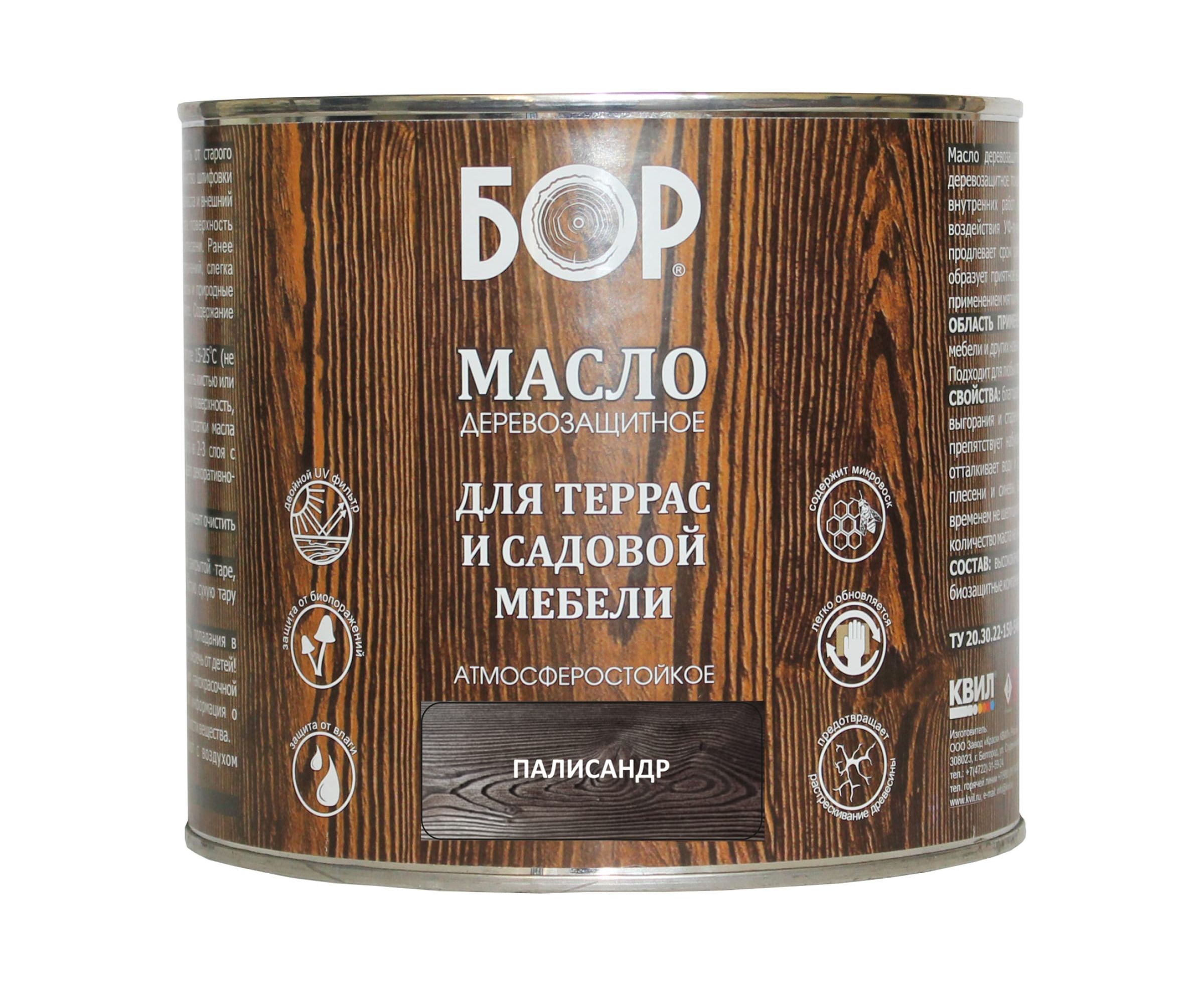 Деревозащитное масло для террас и садовой мебели Бор палисандр, банка 1,7 кг 4690417074204 предназначено для защитно-декоративной отделки изделий из всех видов древесины, эксплуатируемых внутри помещений, а также в атмосферных условиях. Используется для обработки деревянных фасадов, террас, садовой мебели и других новых или очищенных от старого покрытия деревянных поверхностей.