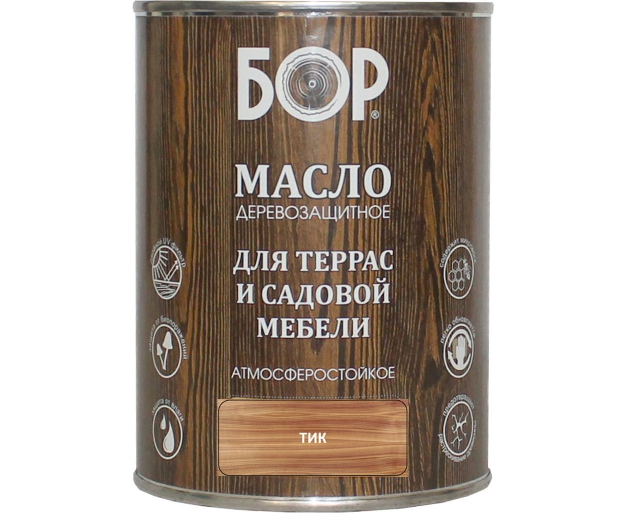 Деревозащитное масло для террас и садовой мебели Бор тик, банка 0,64 кг 4690417061495 предназначено для защитно-декоративной отделки изделий из всех видов древесины, эксплуатируемых внутри помещений, а также в атмосферных условиях. Используется для обработки деревянных фасадов, террас, садовой мебели и других новых или очищенных от старого покрытия деревянных поверхностей.